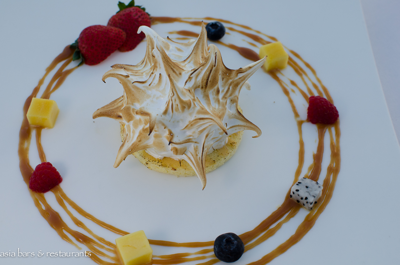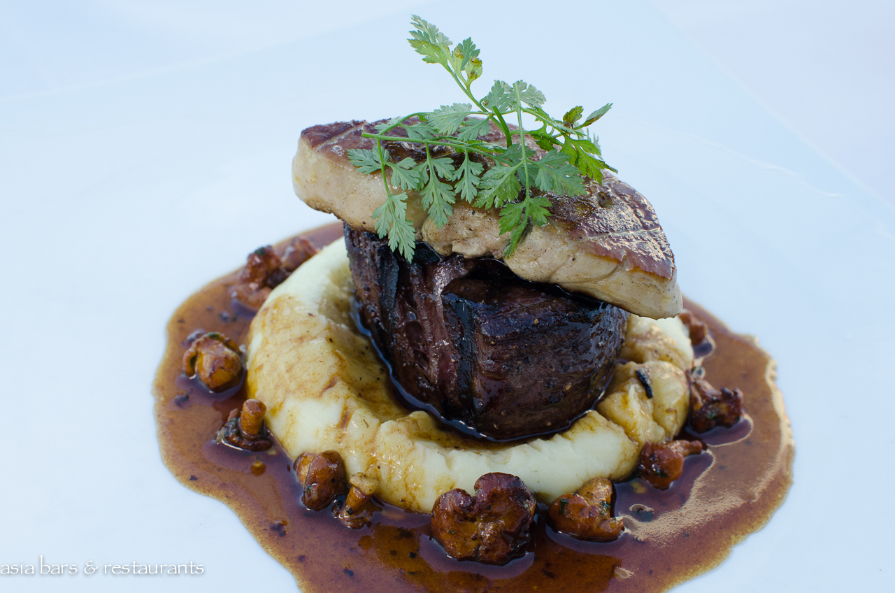 At the upper bar level, guests can choose from a variety of seating options set around the circular decked space – casual rattan sofas and armchairs, comfortable daybeds, and high tables and chairs. At the spacious front deck section, overlooking the bistro on the level below, jazz musicians perform nightly, while an attractive “Happy Hour” promotion between 5 pm and 7 pm adds further enticement to the spectacular sunset experience. In addition to the fabulous views, the bar at Red Sky offers selections of well-executed cocktails – highlighted with a list of 15 Martini varieties – plus the Signature Martinis– four special creations each topped with a foam cap. Further cocktail selections include first-rate renditions of both classic and contemporary cocktails. The extensive drinks list also offers a broad range of wines by the glass, champagnes and premium spirits, all complemented by some tasty bar snacks.