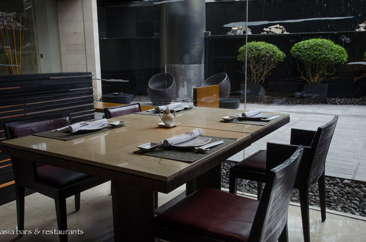 Set within a large lower lobby space, Tsu restaurant offers an outlook through full height glass of a serene Zen garden courtyard, replete with ponds and stone beds. Internally, the contemporary design deftly melds traditional Japanese ethos with modern design elements to create a relaxed yet sophisticated dining environment. Standing between Tsu restaurant and the Nami teppanyaki dining section, the Sake Bar is renowned for serving one of the best sake selections in Bangkok, with over 100 varieties across a broad spectrum of prices. Diners at Tsu can choose between seats at the sushi counter, a series of casual high tables adjacent to the Sake Bar entrance, and well-spaced dining tables within the main dining area. Several private dining rooms are available for small groups, corporate diners and family celebrations.