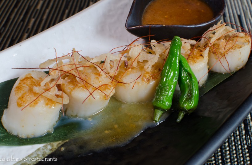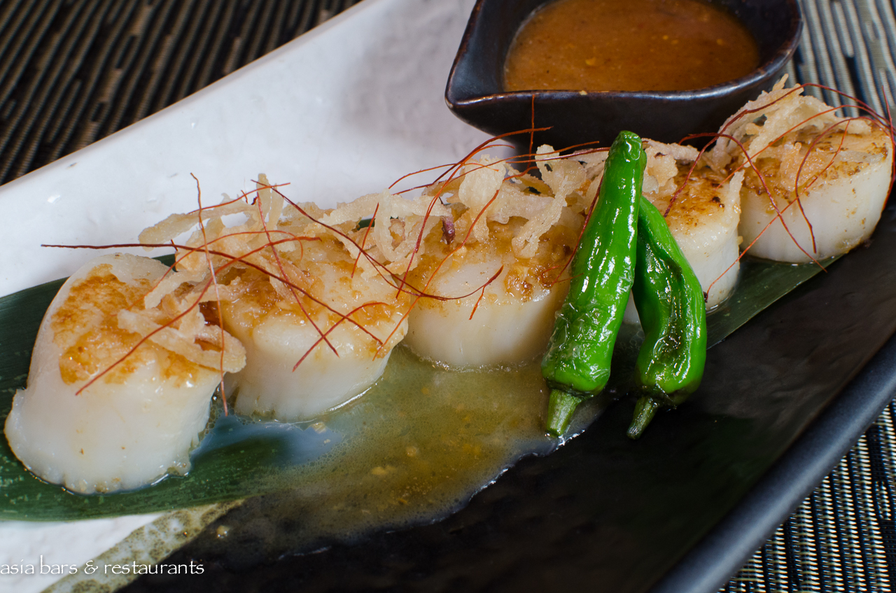 Sourcing the freshest air-flown seafood from Japanese fish markets underscores the exemplary standards set by Head Chef Norio. His extensive menu of freshly prepared traditional sushi, sashimi and rolls also includes evolving seasonal highlights such as the Japanese Autumn specialty of fresh Samna fish. Modern fusion style dishes include the Scallop Thai Green Chili – with seared scallop, mixed spicy Thai green chili, tomato puree, and white miso; and Rossini Roll – with grilled foie gras, Wagyu beef, black pepper soy, and white truffle oil.