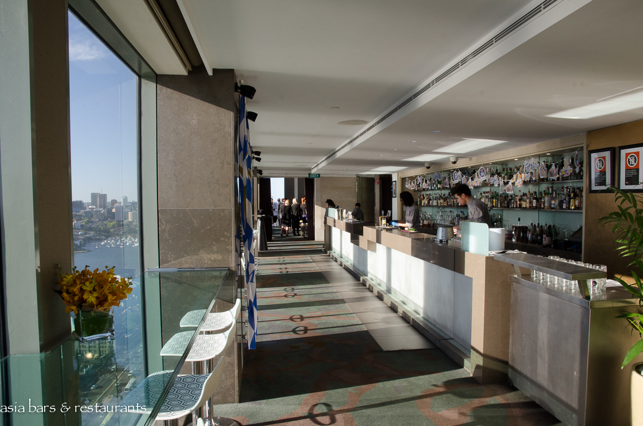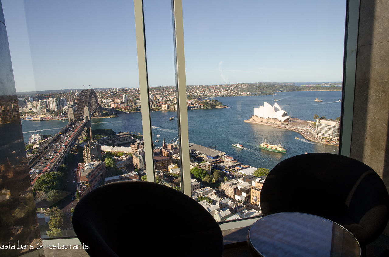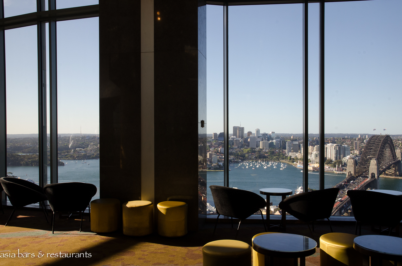Soaring walls of floor to ceiling windows frame the memorable views – with a restrained yet luxurious contemporary decor that does not distract from the magnificent outlook. Sharing the upper level with adjacent Altitude Restaurant, Blu Bar occupies an “L” shaped space, with the sleek long bar extending down the west-facing side, and the main lounge enjoying the prime north and east orientation. Light & airy, the high-ceilinged lounge is suffused with natural light during the day and the sparkling CBD building lights at night. With the hotel built at the crest of a hill overlooking the historic The Rocks area abutting the harbour, the structural height is accentuated by its elevation – providing one of the best vantage spots in the city for taking in panoramic vistas that span the full extent of the Harbour – east and west- plus the inner CBD and urban sprawl beyond.