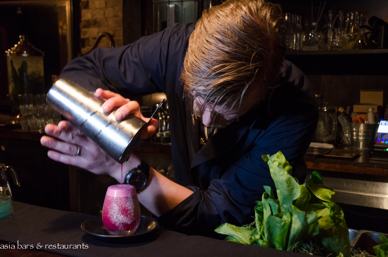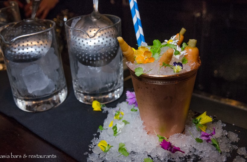 Apothecary currently offers a choice of three themed degustation menus – each with a progression of three different cocktails, built around a whimsical theme. Typifying this concept – one of the current menus – “Down the Garden Path” – showcases cocktails crafted from fresh organic produce. Standout concoctions from this menu include “The Beet Drop – France’s Finest, fig infused port, beetroot, tarragon, egg and chocolate.Textural deliciousness, crossing the boundary from savoury to sweet”. And “What’s up Doc? – Mexican goodness with tequila, a dash of the bitter and twisted, carrot, ginger and citrus. Short and punchy, inspired by Noma. Bugs Bunny approved”.