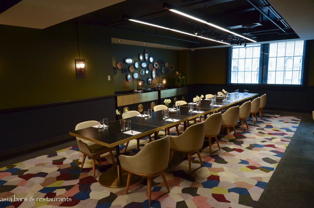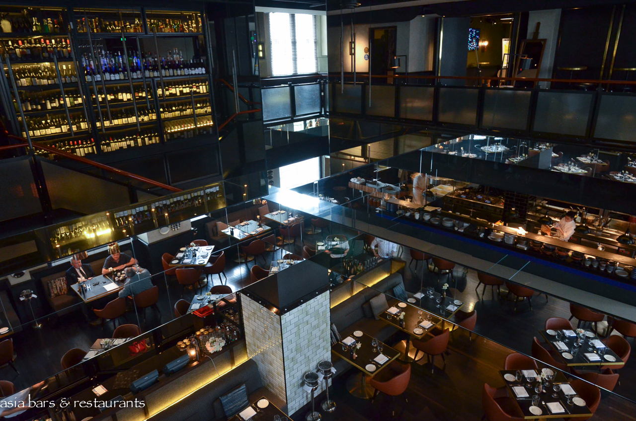 Occupying a capacious twin-level corner space accessed up stairs from the first floor reception of QT Sydney, the sleek contemporary design of Gowings exemplifies a sophisticated modern brasserie aesthetic with its exquisitely detailed decor and glamorous vibe. Beyond the gleaming cocktail bar and massive glass-encased wine cellar, the main dining room spans both sides of the window-fronted corner space. The generously proportioned dining room comfortably accommodates around 120 diners. And upstairs, the intimate Gilt Lounge, allures a glamorous and upscale party crowd late into the night with its progressive cocktails and the ambient beats of lounge music.