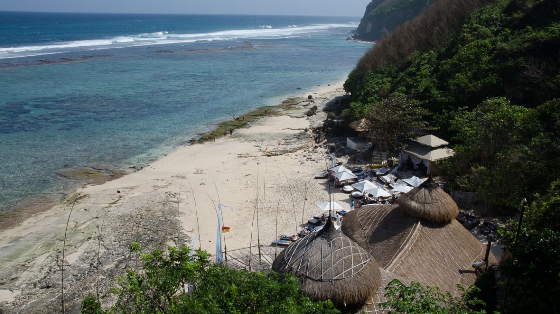 Spectacularly located at the foot of 85 metre high limestone cliffs on Bali’s southern Uluwatu coastline, Karma Beach Bali is one of the resort island’s most high profile upscale beachclubs. Nestled on a private white sand beach, the sprawling main pavilion is complemented with a series of private cabanas to offer visitors an exceptional beach side experience of daytime water sports, casual yet glamorous dining, and transforming in the evenings into a sophisticated venue for sumptuous cocktails, elegant dining, and highlighted by the vibrant weekend DJ sessions. An adjunct to the luxurious Karma Kandara villa resort , Karma Beach Bali is the flagship of an expanding collection of Karma Beach Clubs – currently established in the Bahamas, Fiji, and at Gili Meno on nearby Lombok Island.