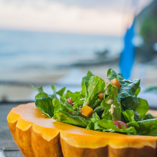 Diners at Karma Beach Bali can order from a menu that features an appetizing assemblage of dishes selected from Mediterranean, Indonesian and Asian cuisines, with a focus on fresh local seafood. Standout dishes include sushi and sashimi from the chef’s live sushi station; pizzas from the wood-fired oven; grazing platters of seafood to share; and fresh grilled catch of the day seafood. Other options include a wide variety of salads and tapas; Mediterranean dishes and dessert temptations. Meanwhile at the bar, refreshments include an extensive wine list, complimented by the signature Chakra Cocktails created by the in-house mixologist.