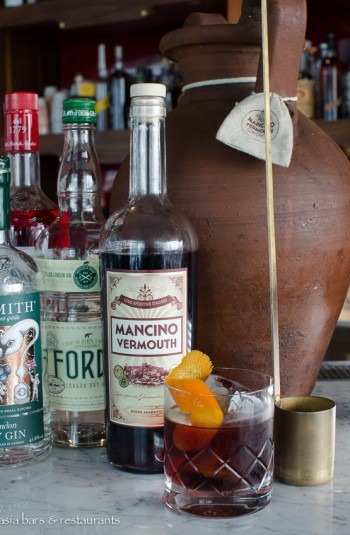 At the Kitchen, well-executed classic French cooking of familiar dishes are rendered simply, yet enhanced with the added “theatre” of table side service and plating. Standout selections from the menu include Wild Sea bass, sautéed organic vegetables, scallops slices ; and to share – Beef rib eye, roasted potatoes with rosemary, black olives. While up on the Lounge level, a menu of Mediterranean influenced bar bites includes dips, mezze platter, hot and cold plates, and artisanal cheeses. Highlighting the classic cocktails of Giancarlo Mancino is the signature ONEGRONI – an exceptional combination of two craft gins and his eponymous Mancino Vermouth Rosso Amaranto – made in single small batches – and uniquely aged overnight in a traditional Italian clay wine pitcher.