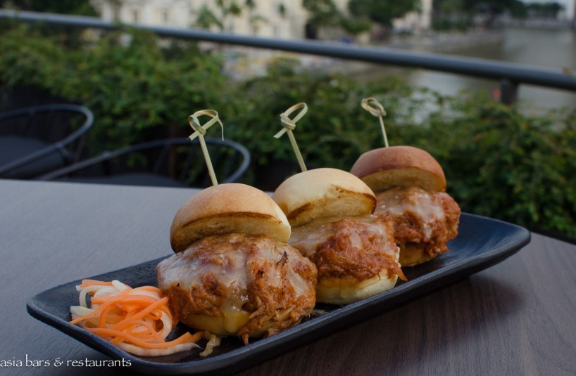 Occupying the entire rooftop, Southbridge boasts a stylish minimalist decor featuring monochrome furnishings, black granite countertops, and black wire-framed bar stools. The centrepiece “U”shaped bar separates the main riverfront section from a more intimate space at the rear of the rooftop, comfortably decked out with low tables and seats. While the rooftop space is completely open to the skies, extendable awnings on the three sides of the central bar provide some protection from any inclement weather.
