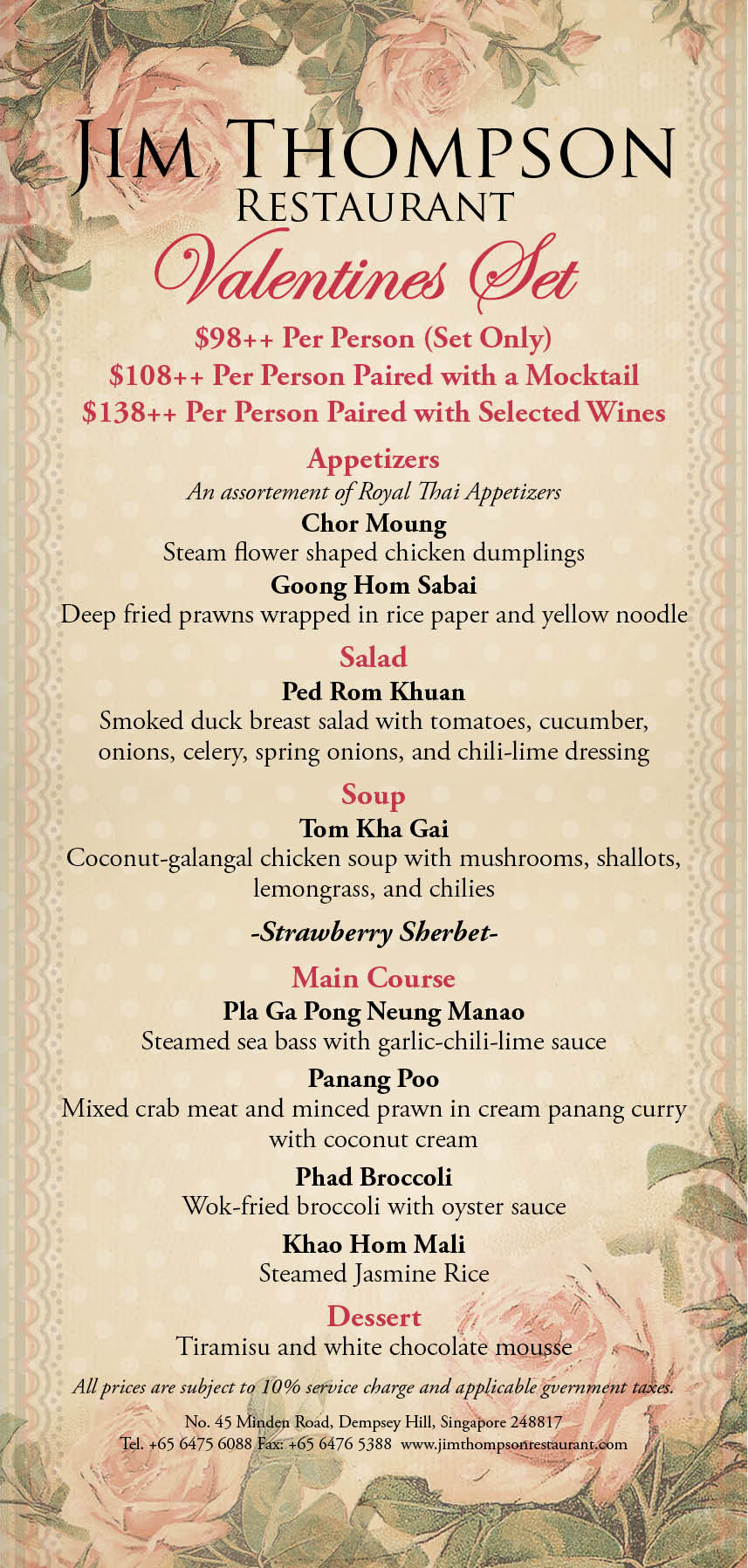 Available for the month of February 2015 at Jim Thompson Thai Restaurant in Singapore.