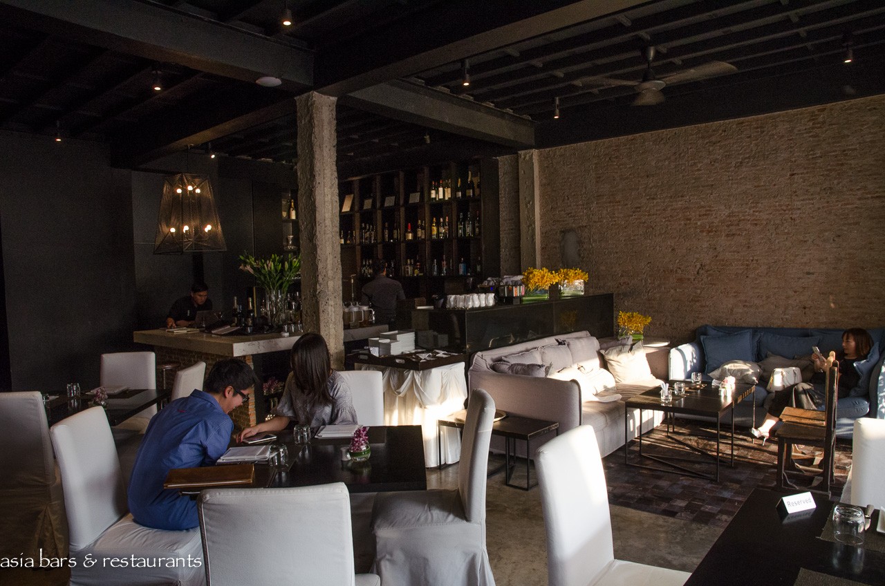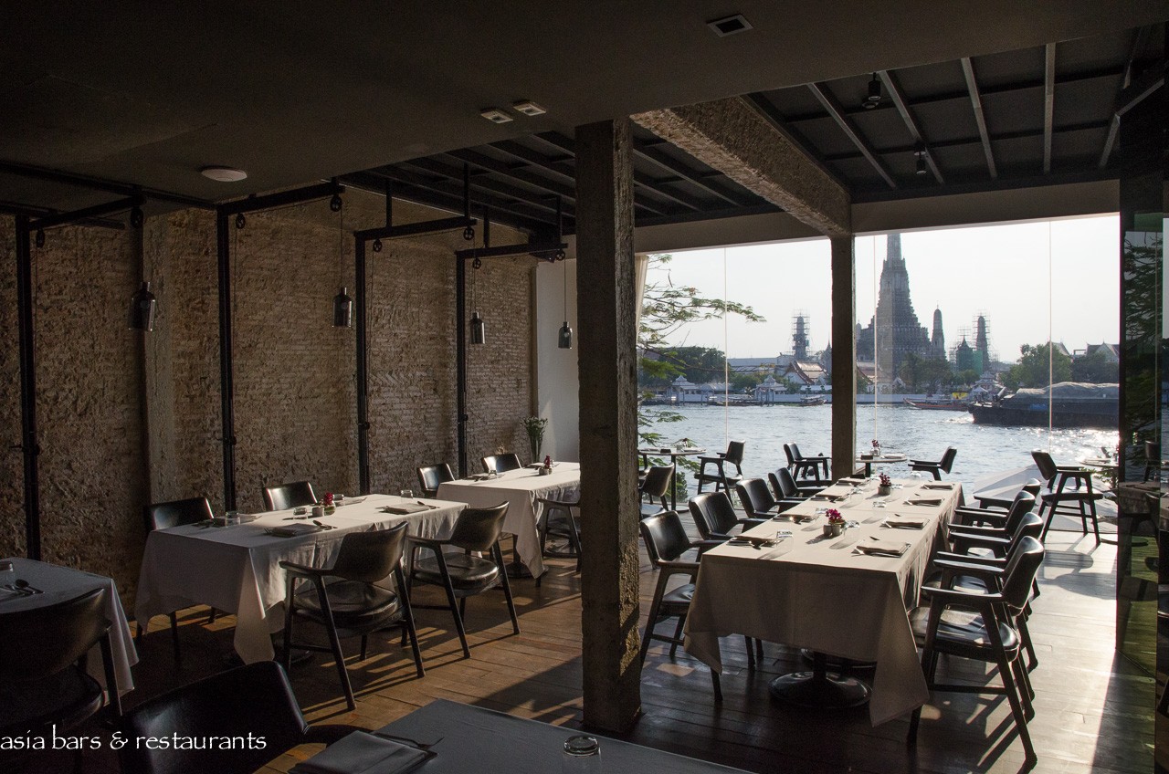 Opened in 2013, sala rattanakosin was developed by the locally owned luxury resorts operator SALA Hospitality Group. The 15 room boutique hotel is set within a near-century old warehouse building, refurbished with a minimalist decor that features modern elements deftly over-laid onto surfaces of revealed original construction materials like raw brickwork, unfinished concrete and wooden beams. Set across two levels, the eatery & bar offers diners the choice of outdoor dining and drinks on the riverfront timber deck, on indoors at either the casual ground level bar space, or at the intimate dining room space on the second floor. An internal black steel staircase leads up to the open-air rooftop bar and lounge where guests can take in the wonderful views in laid-back comfort.