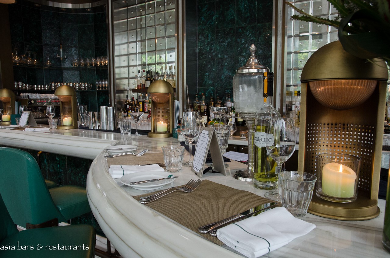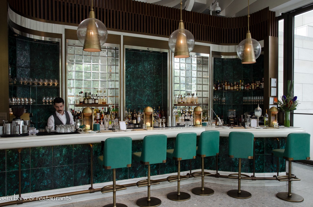 Operated by the upscale Swire Hotels group, the culinary concept for The Continental was designed by renowned UK chef and food writer Rowley Leigh in his collaborative role as chef Consultant. The glamorous interior design, created by acclaimed London-based David Collins Studio, evokes the quintessential brasserie with a sophisticated modern decor featuring emerald green leather upholstered banquettes and booths, extensive white marble, antique bronze detailing, and unpolished parquet floors.