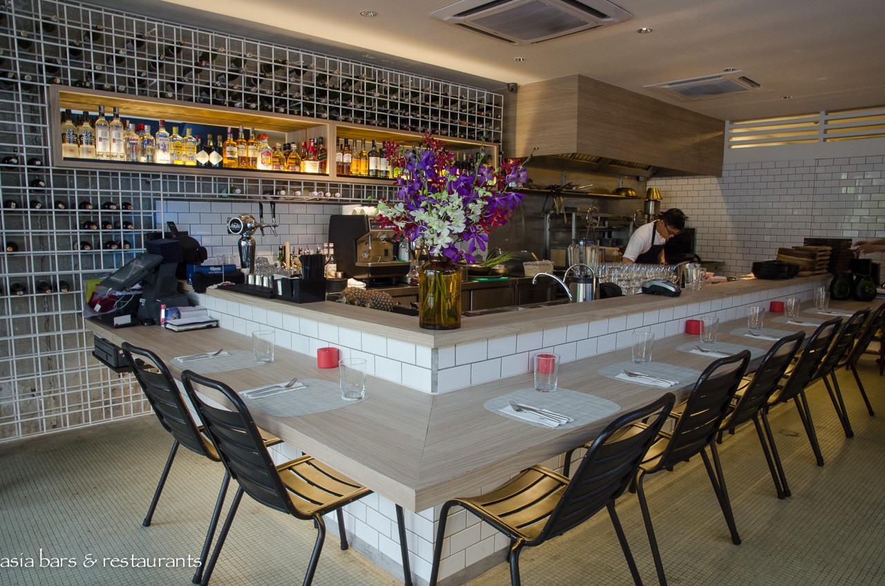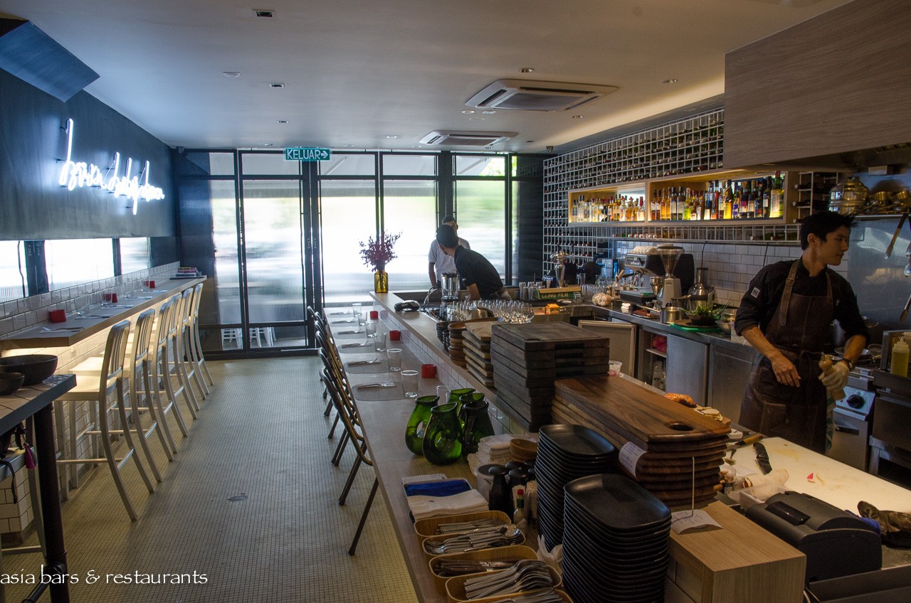 Unobtrusively located in an unremarkable row of shophouses in a quiet residential neighbourhood, Bakar’s white-tiled facade melds comfortably into the tree-lined streetscape. Entry via heavy industrial glass doors reveals a brightly lit and compact interior anchored by the gleaming centrepiece open kitchen and its counter seating, with additional counter seats set along the opposite white-tiled wall – and a couple of high tables for small groups towards the rear of the room. The stylish simplicity of the decor keeps the focus on the cooking, and underscores the casual yet refined dining sensibility of Bakar.