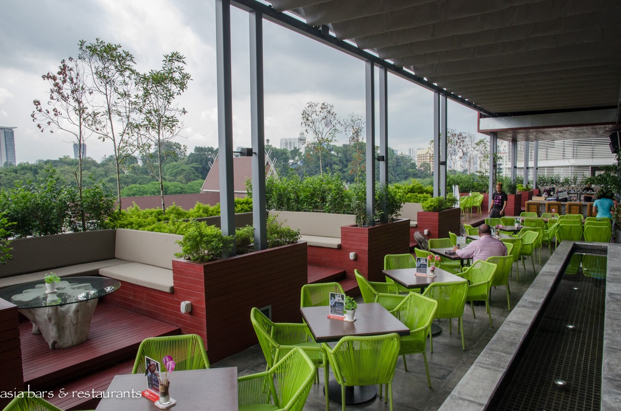 Another venue from the experienced SOUL Society team, Hubba Sentral is located on the second level at Menara CIMB, conveniently accessible to the numerous nearby office towers, luxury hotels, and upscale residential towers. Conceptualized to entice guests with a convivial, laid-back dining experience, the chic contemporary decor complements a series of comfortable dining and bar settings, and with a large private room – titled The Vault – good for discrete business dinners. On the outdoor terrace, ducted air conditioning keeps the comfort levels amenable for both daytime and evening dining, while the timber decks and panoramic vista over treetops to the adjacent parklands impart a disconnect from the office tower environment.
