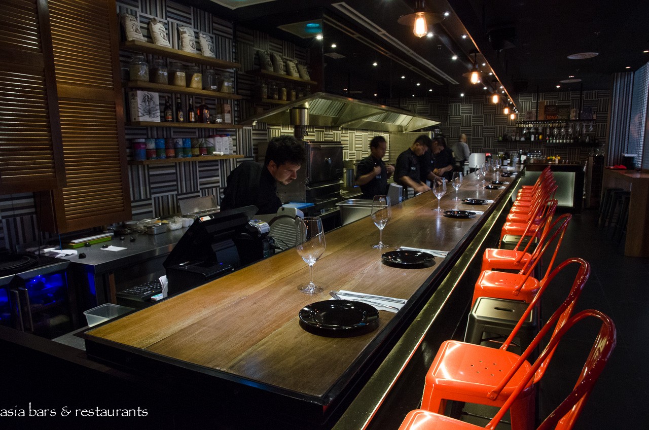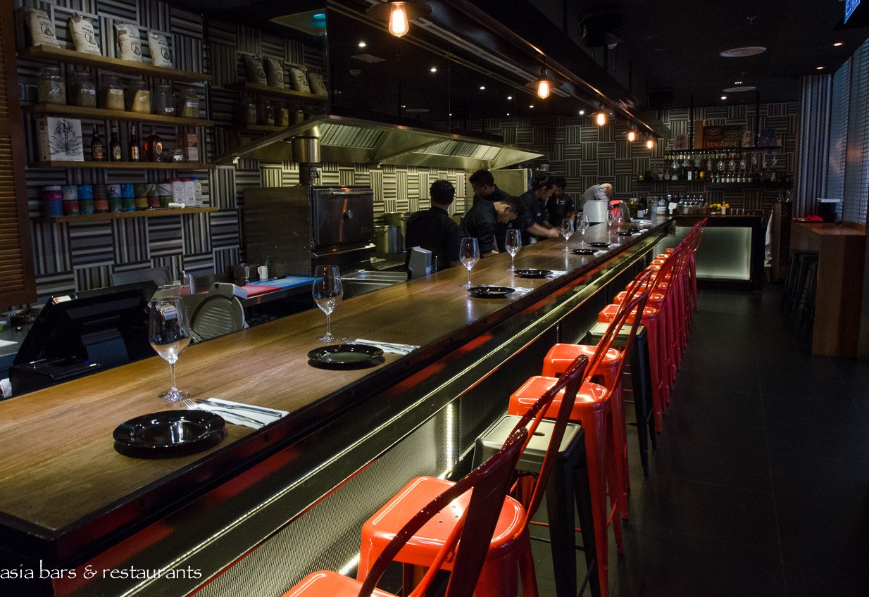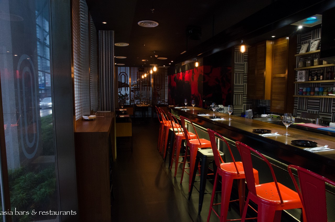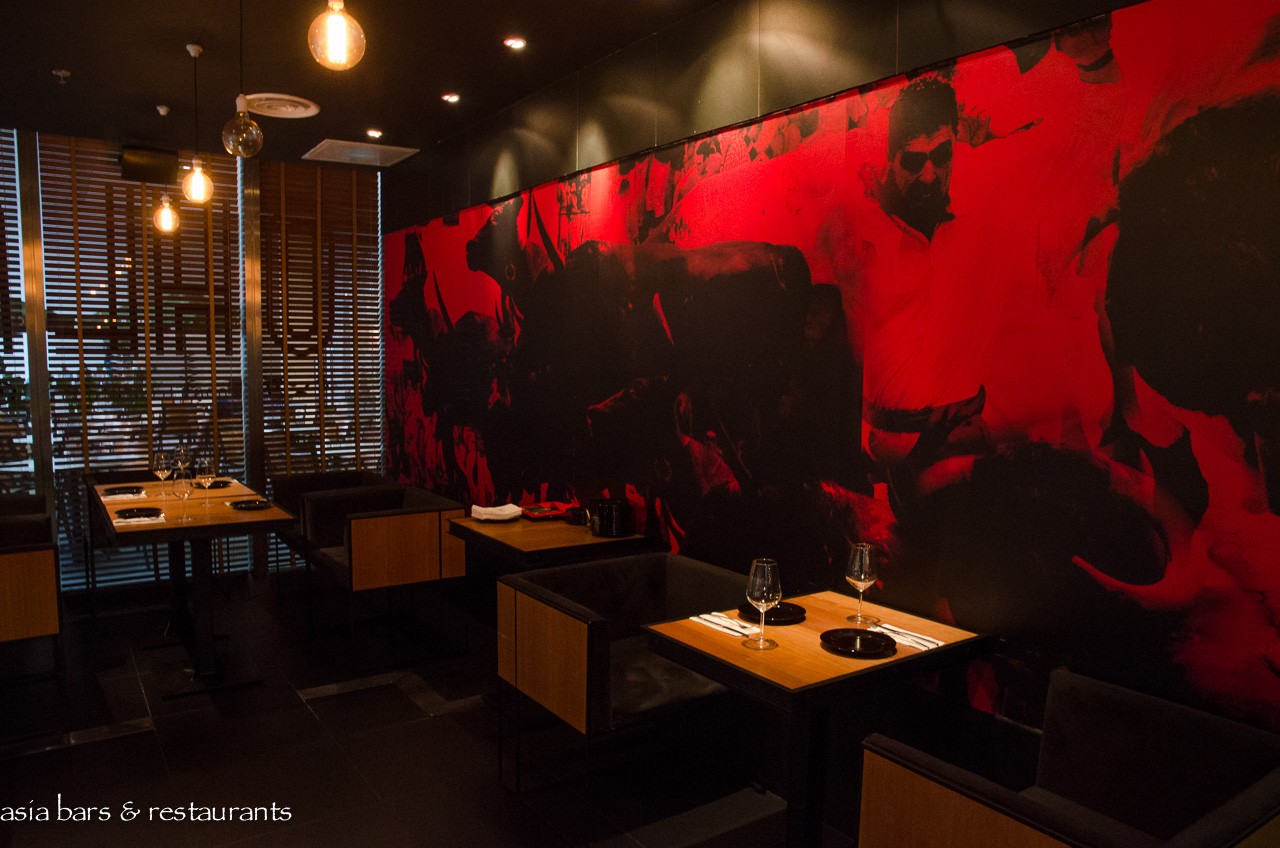 Entering Ohla, guests can take one of the coveted seats at the long timber counter facing into the open kitchen, or choose between the window facing counters, or several individual tables in the adjacent compact dining space that are good for small groups. An attractive contemporary decor combines warm timbers with bold red aluminium bar seats, while the walls of the dining section feature a striking red and black photographic mural depicting the iconic running of the bulls fiesta. Ohla can be found at the street level of The Intermark building, conveniently accessible to the main business and shopping district and a short few minutes walk to KLCC.