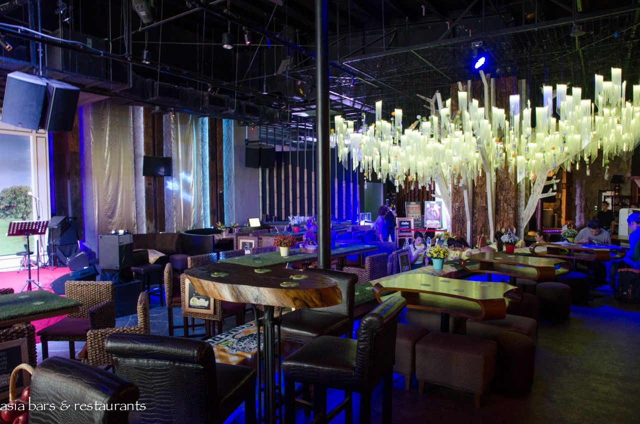 Up on the open-air rooftop, Stratosphere entices a regular crowd of guests with its quintessential “rooftop bar” experience. Occupying the entire rooftop level, the original helipad has been re-imagined as a naturally grassed, infinity-edged, chill-out lounge and bar space. Comfortably spaced across the lush green grass rooftop, clusters of sofas; round high tables with stools; plus table and chair settings provide a variety of options to take in the balmy tropical atmosphere. At the bar a refreshing selection of well-executed popular cocktails like mojitos and margaritas, together with champagnes, wines, beers and non-alcoholic beverages, are all served. With unobstructed 360 degree views, guests at Stratosphere can enjoy truly panoramic sunset and nighttime views across the urban sprawl of KL, while chill-out music and colorful lighting effects enhance the laid-back vibe.
