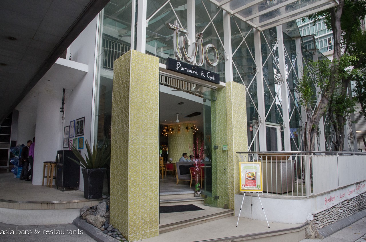 Attractively set within an expansive street front space within the upscale Ascott Residences, Tujo Bar-sserie & Grill is a contemporary casual dining and drinks destination in the heart of downtown KL – conveniently adjacent to KLCC and Convention Centre. Tujo entices an eclectic clientele throughout the day and night – attracted by both the convivial atmosphere with friendly service, and the consistently well-executed food and drinks. The glass-fronted, double volume space provides a variety of settings across the main ground floor and an upper mezzanine level. Guests can choose between perching at the prominent bar – or take a seat at various dining settings on both levels. An outdoor garden terrace offers further possibilities. Open daily from early morning, Tujo’s service smoothly transitions from daytime meals, snacks and drinks, into a more vibrant evening destination popular for sociable dining, polished cocktails and music from DJs and live performers.