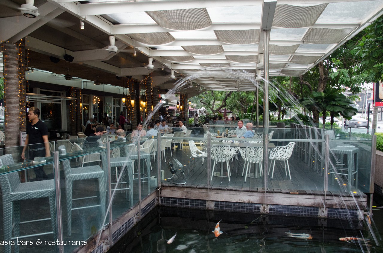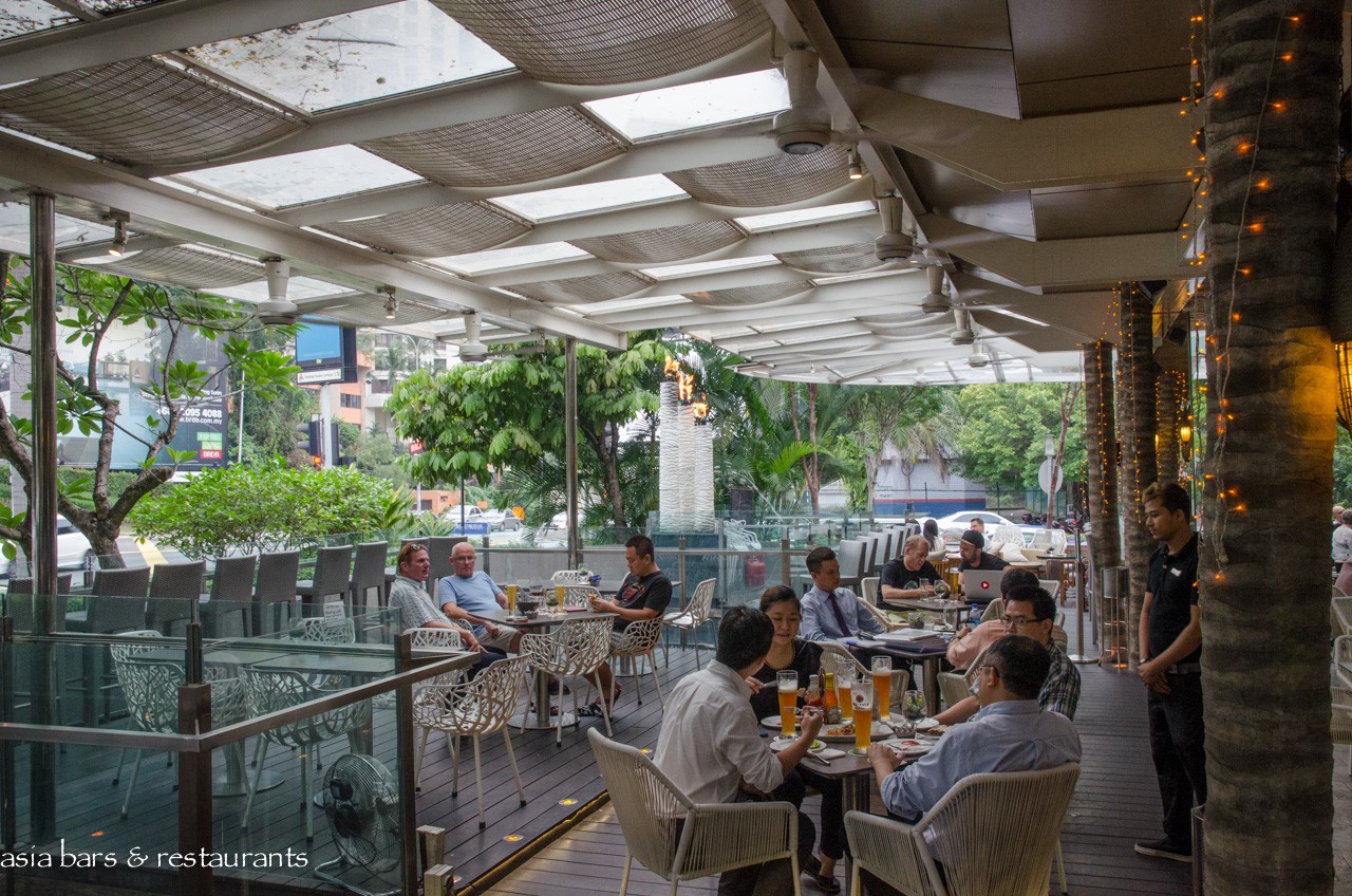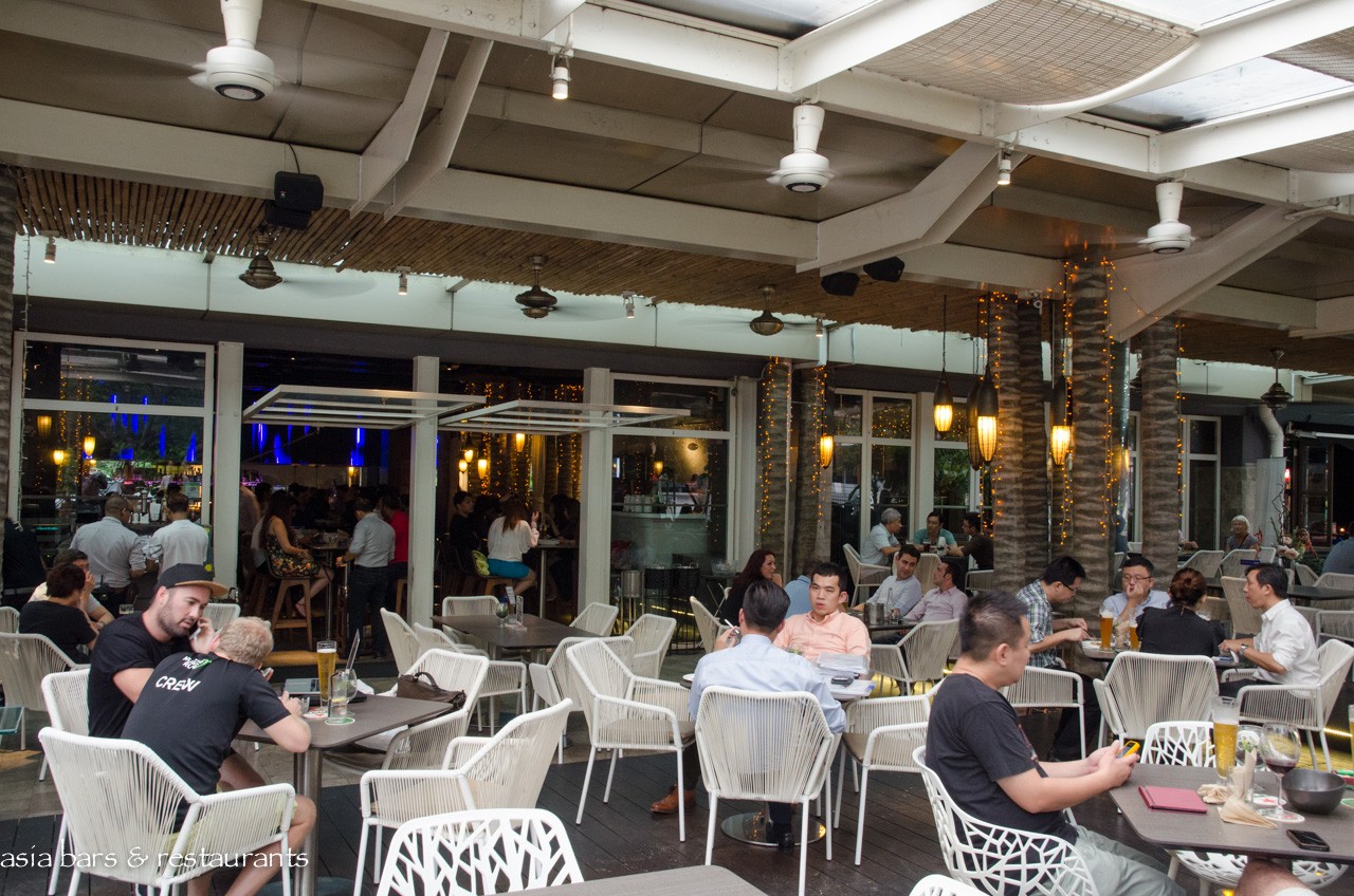 Occupying a generously-proportioned corner space on the ground level of the fashionable Bangsar Shopping Centre lifestyle complex, the contemporary design of WIP has been inspired by the relaxed lifestyle of Mediterranean coastal resorts – conveying a sense of casual escape from the hectic KL urban bustle. Spread across spacious indoor and outdoor dining and bar areas, the eclectic decor features raw wood finishes, gardens with water ponds, interspersed with quirky design elements such as the free-form bar and palm tree trunks. Seating choices include outdoor lounge settings, indoor high tables adjacent to the bar, and dining tables both on the expansive outdoor terrace, and at the more intimate indoor section.
