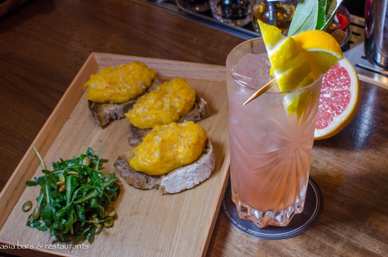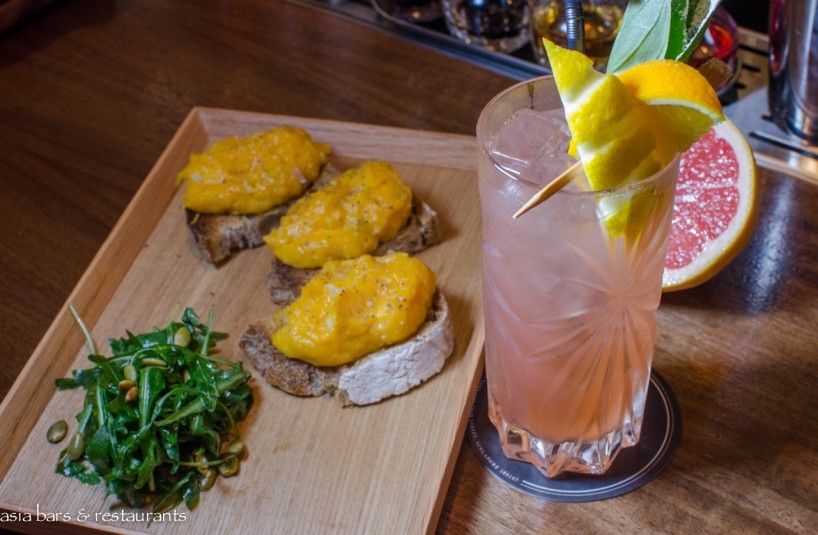 Headlined by the signature cocktails, the drinks list at the bar also features craft beers, wines and premium spirits. Referencing legendary actors and artistes from the period, classic cocktails are reinterpreted with a contemporary flair for imaginative ingredient combinations and well-balanced flavour profiles. The kitchen serves up a concise bar bites menu of small plates that offer tasty accompaniments to the flavourful beverages. Taking a cross-cultural culinary approach, the appetizing comfort dishes and snacks are elevated with local spices and ingredients, and attractive contemporary presentation.