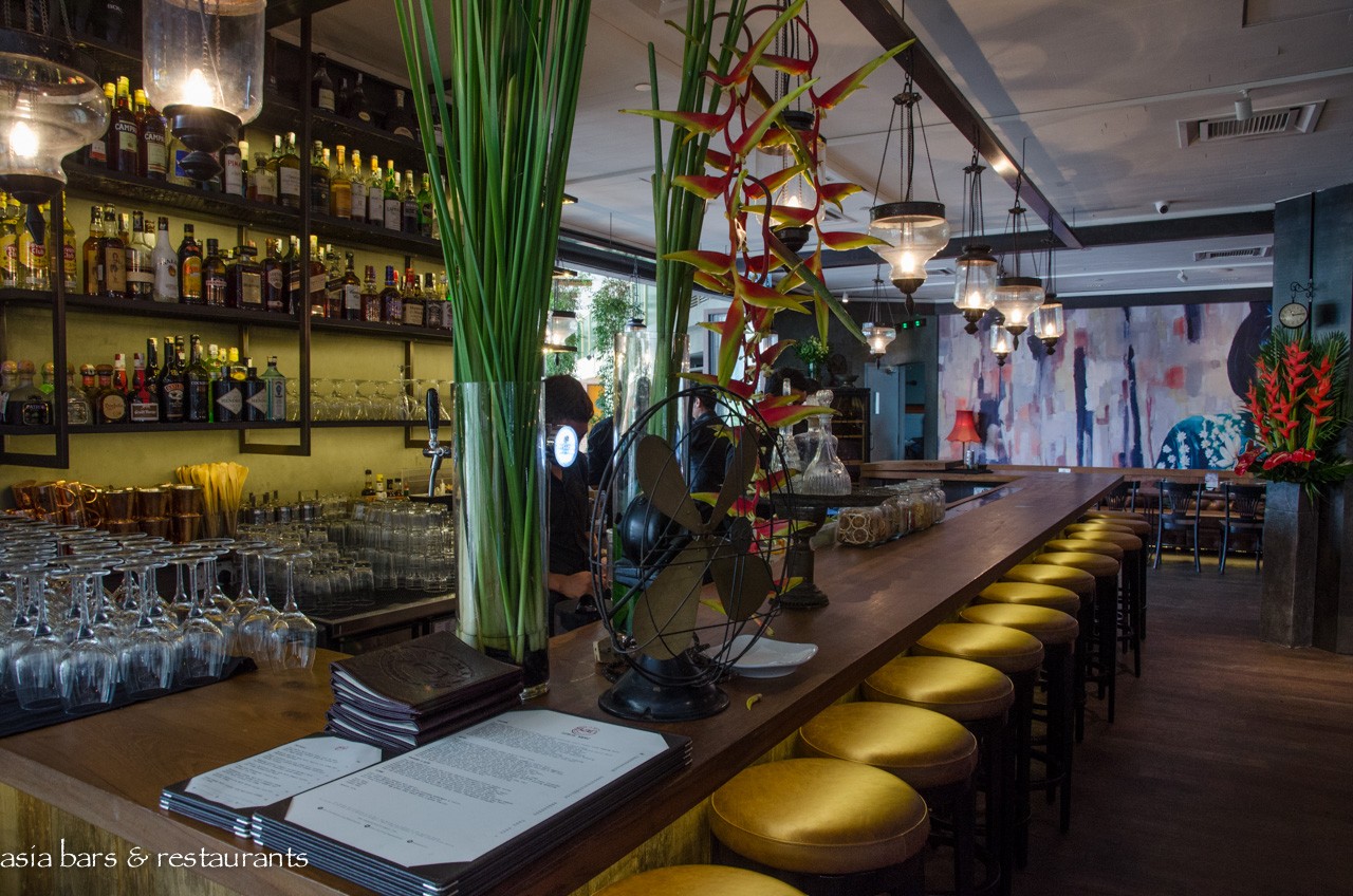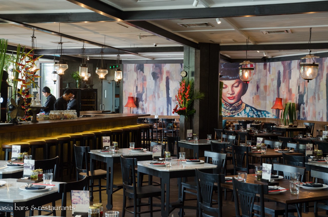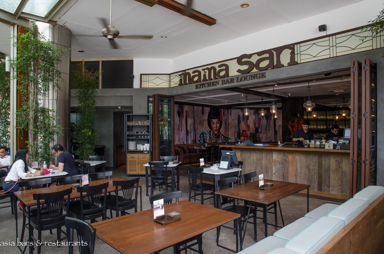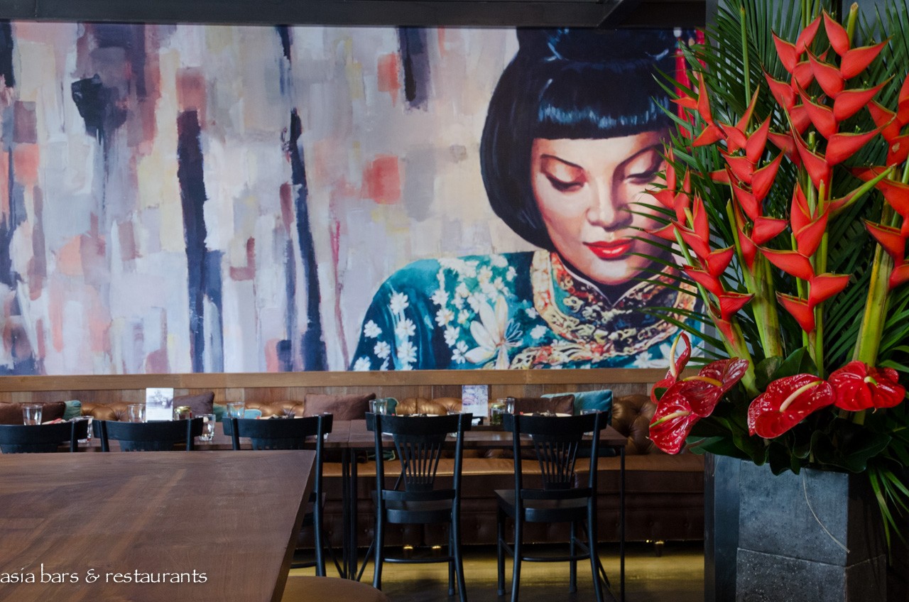 Decor Replicating the design theme of the Bali flagship restaurant, the decor of the KL offshoot features a chic blend of East and West influences reminiscent of 1920′s Shanghai. Dark timbers and retro furnishings predominate, while the hallmark “Mama San” mural prominent across the back wall, together with leather Chesterfield sofas, further evoke the design sensibilities of the Bali restaurant. Guests can choose between seating within the main interior dining room, or at the more casual outdoor settings of the terrace section that overlooks the KLCC parklands.
