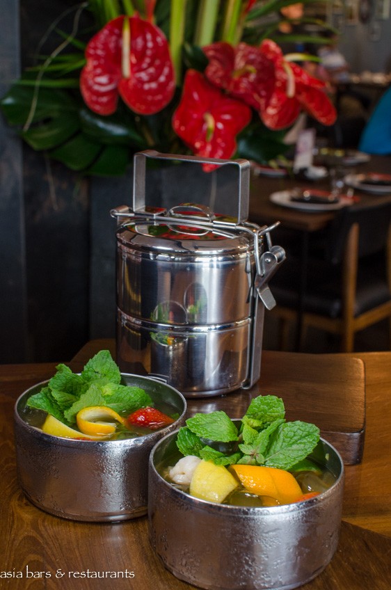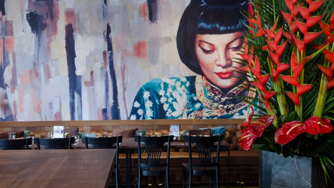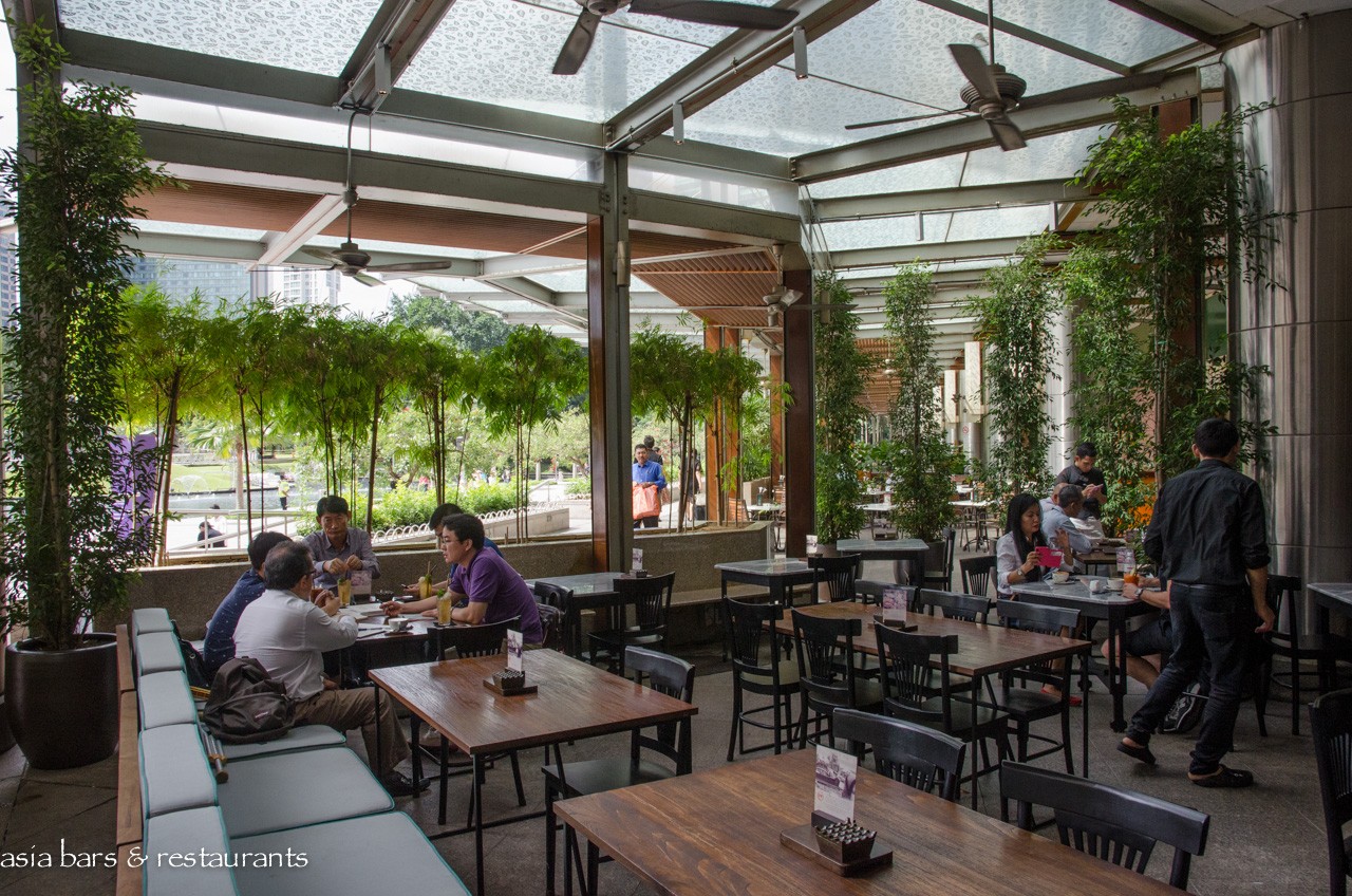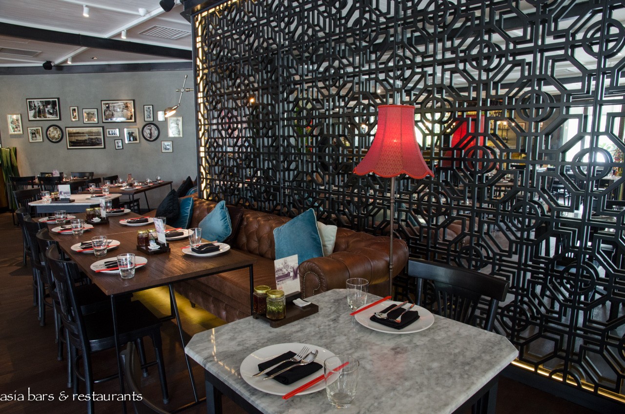 Decor Replicating the design theme of the Bali flagship restaurant, the decor of the KL offshoot features a chic blend of East and West influences reminiscent of 1920′s Shanghai. Dark timbers and retro furnishings predominate, while the hallmark “Mama San” mural prominent across the back wall, together with leather Chesterfield sofas, further evoke the design sensibilities of the Bali restaurant. Guests can choose between seating within the main interior dining room, or at the more casual outdoor settings of the terrace section that overlooks the KLCC parklands.