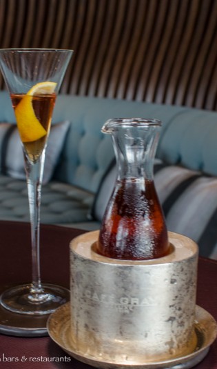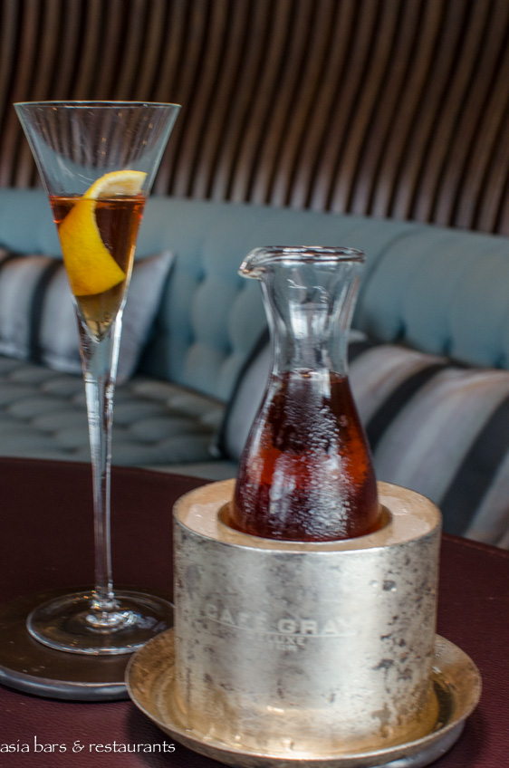 Cocktails A favourite among Hong Kong’s fashionable set, Cafe Gray Bar is a vibrant destination for evening drinks while perched at the long travertine bar counter. An impressive wine list and polished cocktail program are agreeably supported by a compact bar menu. Recently updated, the signature cocktail list features proficiently crafted reinterpretations of classics – exemplified by the House Martinez – made with G’Vine Gin, La Quintinye Rosso Vermouth, Orange Curacao, orange bitters, and lemon oil.