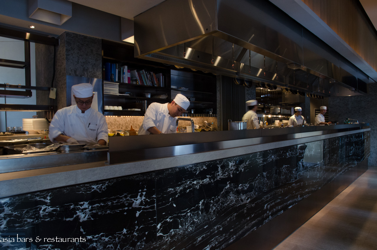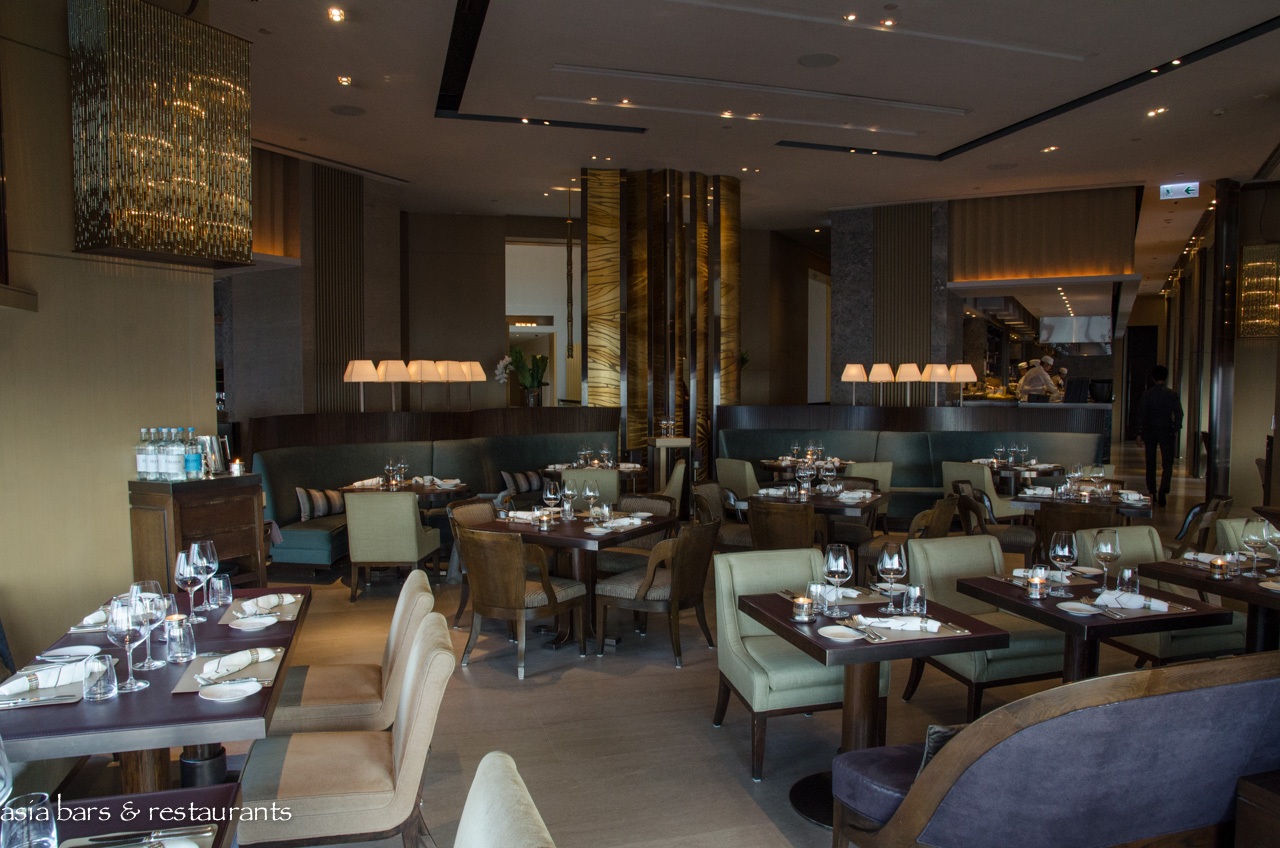 Design The Upper House was conceived as “a haven of calm and quiet taste” with local architect Andre Fu creating an interior design that exudes a comfortable interpretation of modern luxury. At Cafe Gray Deluxe, the exquisitely executed decor features a palette of warm greys, champagne gold and deep lilacs, accented with bold elements like the long marble counters at both the open kitchen and bar, and the spectacular external views. In addition to the main dining room, a series of semi-private dining alcoves extend opposite the open kitchen. The bar section comprises an impressively long marble counter, with intimate corner banquette settings arranged along the window frontage, and a spacious lounge area set behind a curved, slatted wooden screen.