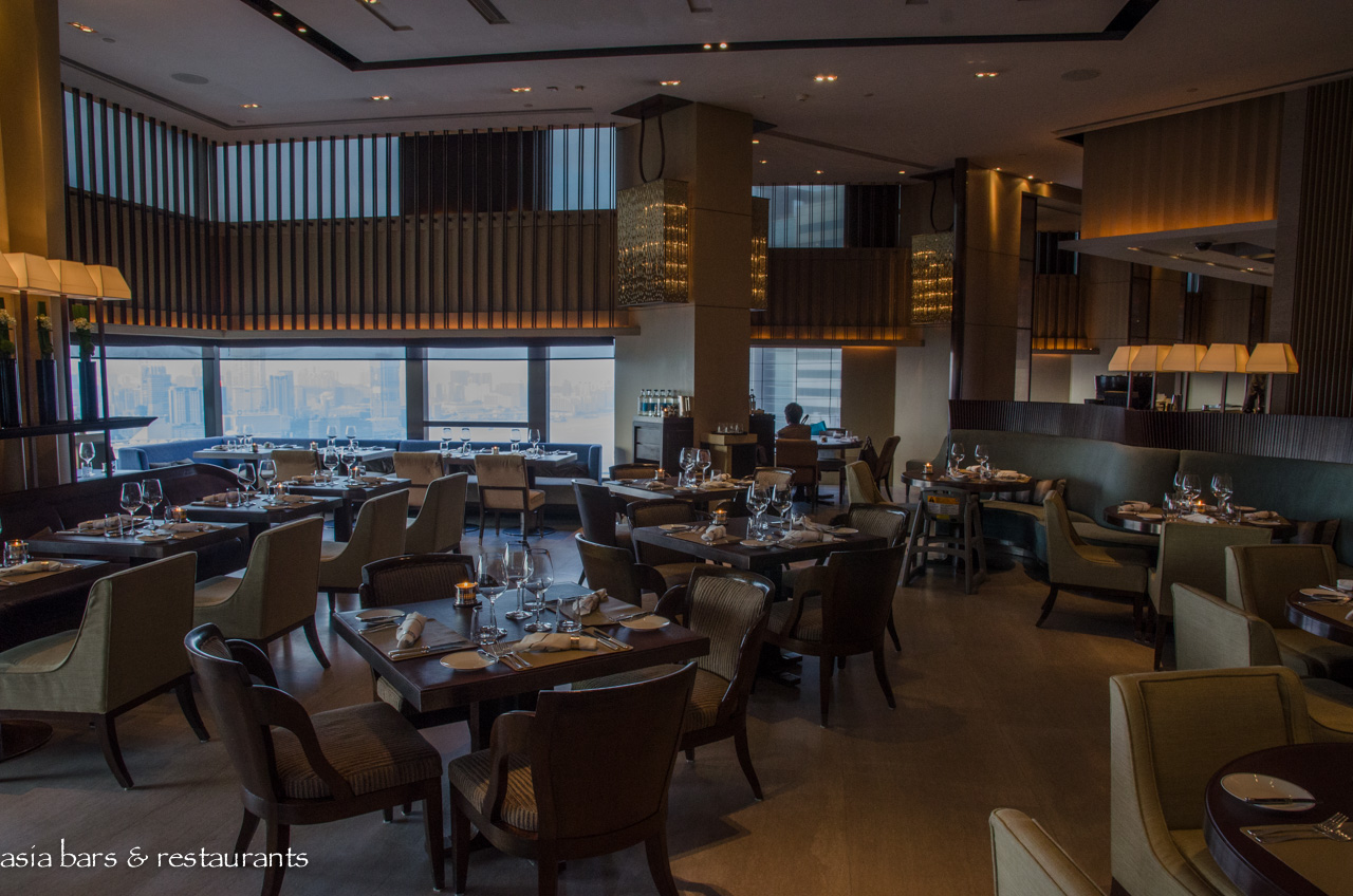 Elegant dining and sophisticated cocktail lounge in luxurious top floor space overlooking Victoria Harbour