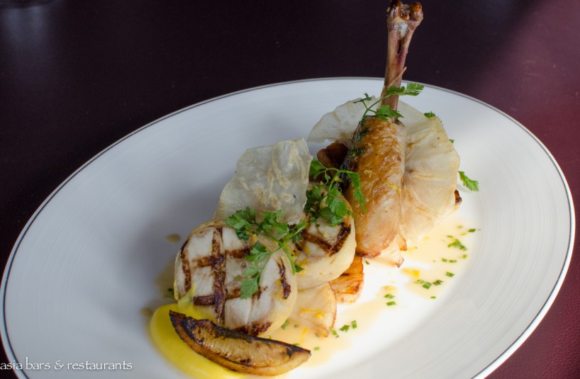Cuisine Seasonal menus designed by consulting chef Gray Kunz feature organic ingredients cooked to his signature style of modern European cuisine with Asian and American influences. Dishes from a recent menu that exemplify the culinary identity include the Tandoori Spiced Crab Cakes, and Grilled Organic Chicken with Lemon Confit and Oven Baked Celeriac. The sumptuous Afternoon Tea menus are legendary – regularly highlighted by special collaborations with famous lifestyle and fragrance brands.