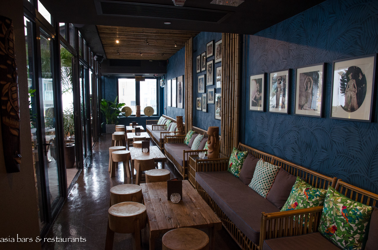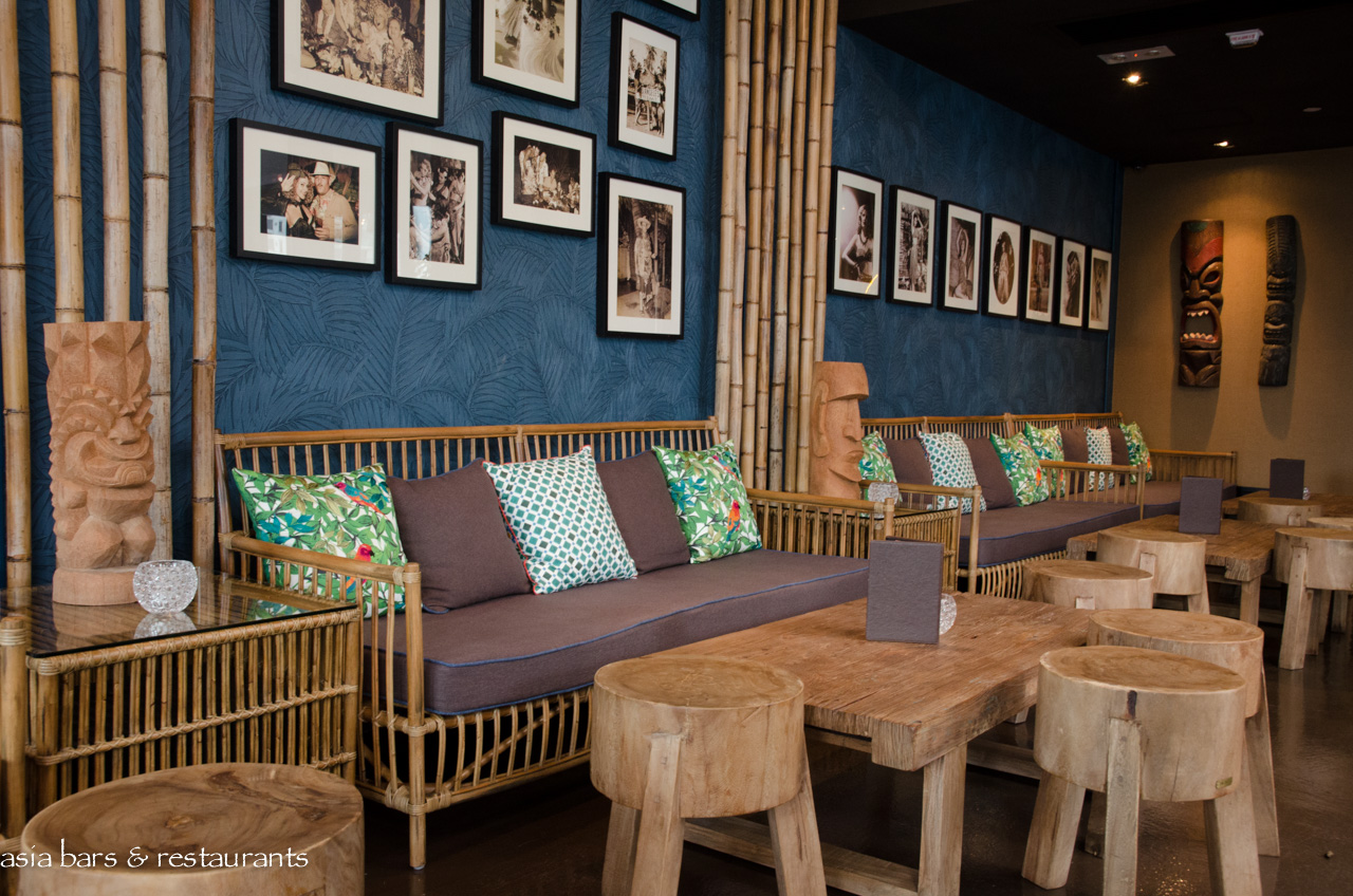 Design Recreating a Polynesian tropical escape on the top floor of a Wan Chai office tower, the design evokes classic tiki cultural icons in a tasteful decor that features extensive bamboo furniture, carved timber totems, tropical plants and floral printed soft furnishings, while a retro aesthetic adds sophisticated elements that reference the 1970’s. A handsome solid timber bar is the centrepiece at Mahalo – showcasing an extensive range of rums – while cheerful bartenders clad in Hawaiian shirts shake up the tiki concoctions.
