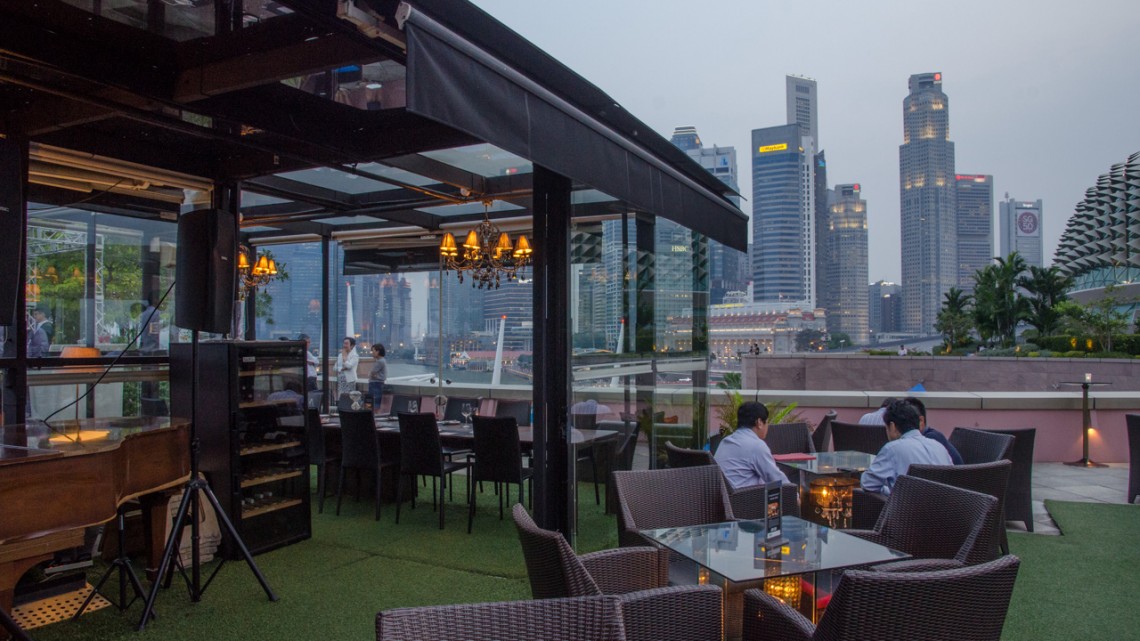 Seasonal organic cocktails and contemporary French cuisine at chic rooftop bar atop Esplanade Theatres