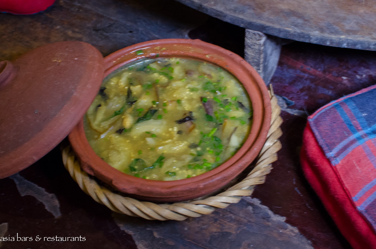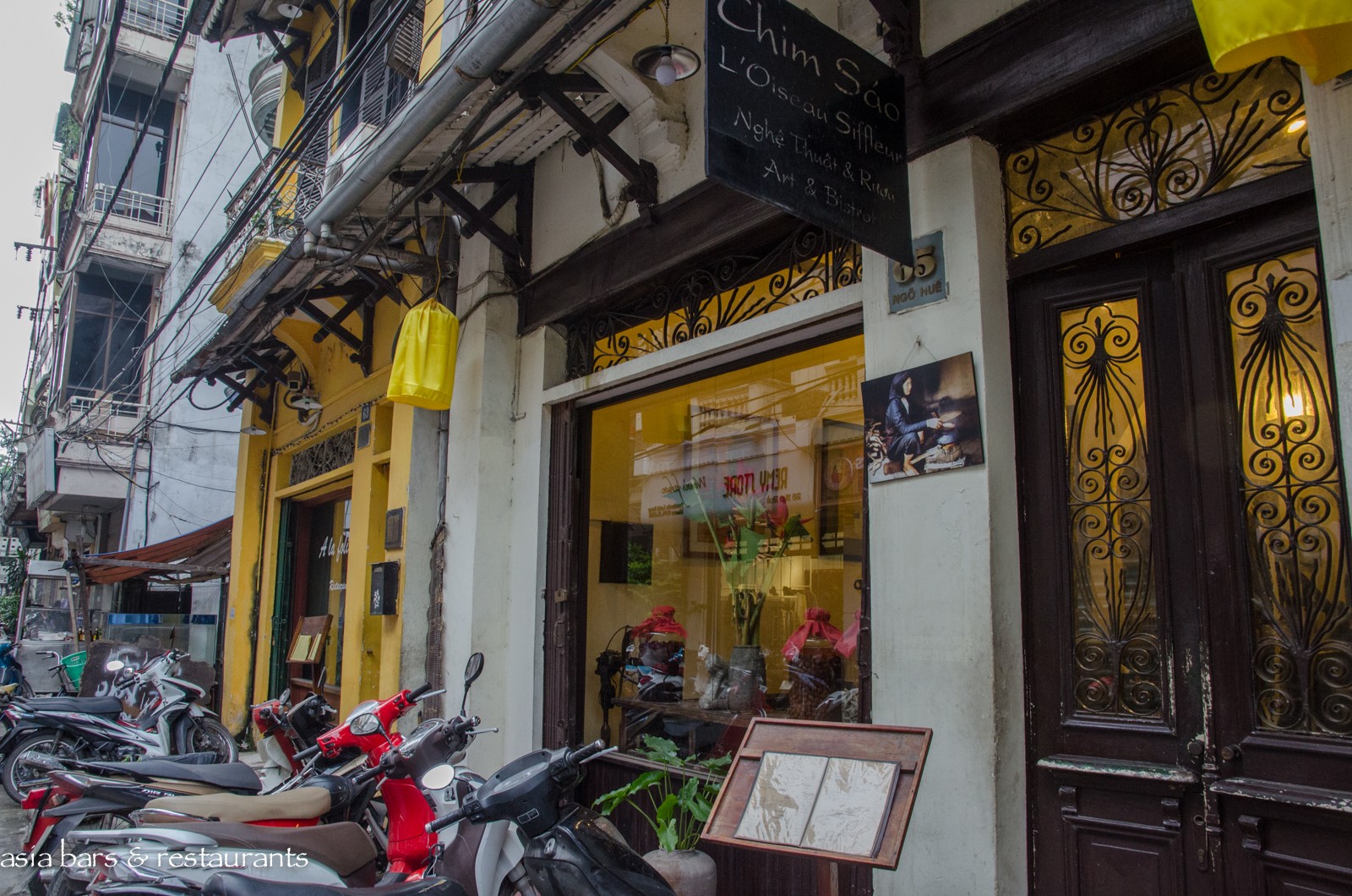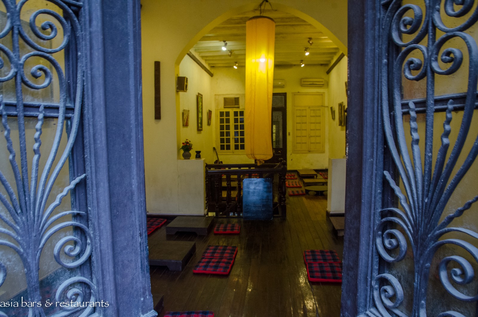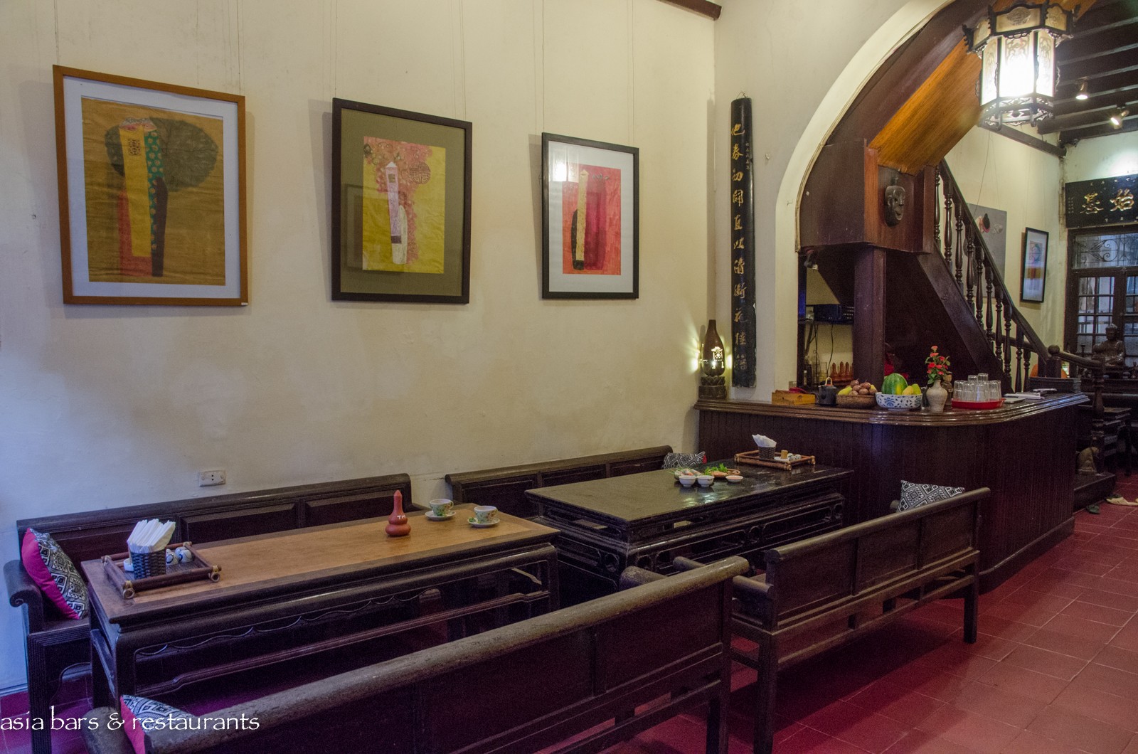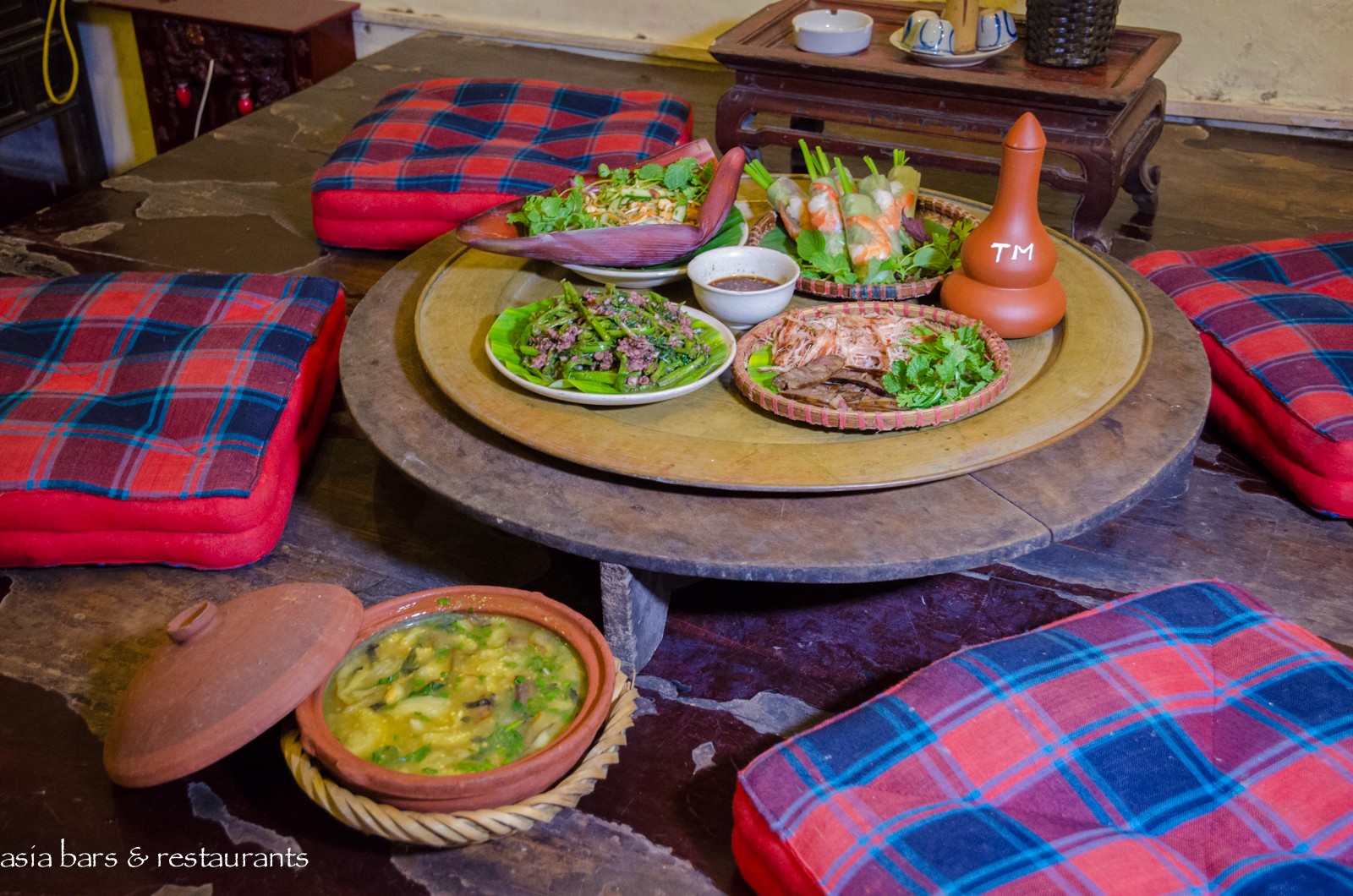 Decor Housed within a 1930′s French-colonial style two-story residence in an unremarkable small street in the midst of Hanoi’s residential (and art gallery) Hai Ba Trung district, the restored residence retains many of its original features – while the interior decoration features local antique timber furniture. On the ground level, the dining area is furnished with several large traditional dining tables and bench seating, and on the upper floor of the converted residence, traditional village-style dining settings with floor cushions and low tables are arranged across the open floor space. Artworks from local artists are displayed throughout, with vintage paraphernalia and Buddha carvings references of a family heritage.