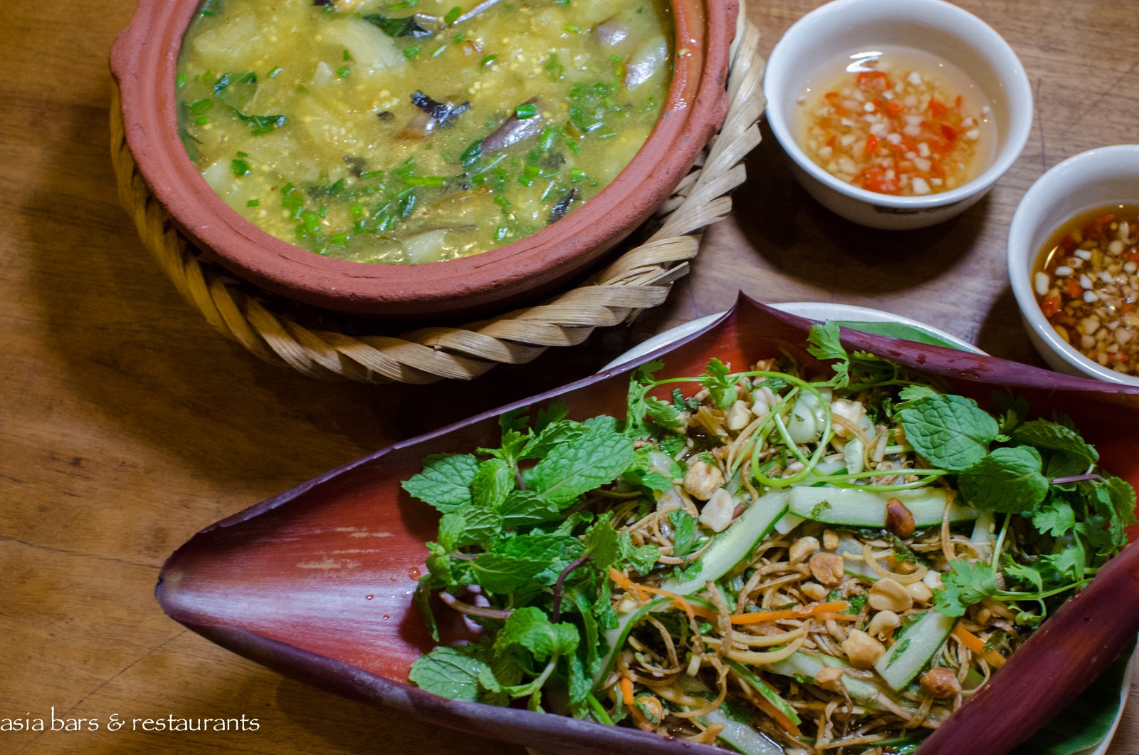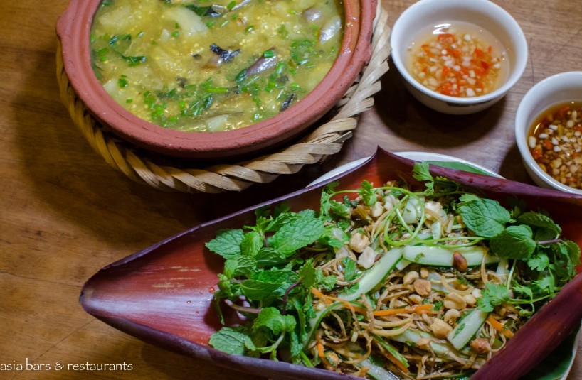 Food The menu at Chim Sao recreates the original recipes and ingredients typical to a traditional northern Vietnamese village. A diversity of ingredients reflects a seasonal approach as villagers would find and cook whatever was available – everything from snails, grasshoppers, small and large fish, shrimps, frogs, eel and snake, to the meat of water buffaloes. Fresh vegetables include wild aubergine, banana flower, green papaya, and forest bamboo. Dishes are simply cooked and presented in the traditional family style – with small plates and mains intended for sharing. A signature dish is the Minced Pigeon meat with crispy prawn crackers; other dishes that typify the cooking include Banana flower salad, and Mountain Ethnic minorities’ pork sausage.