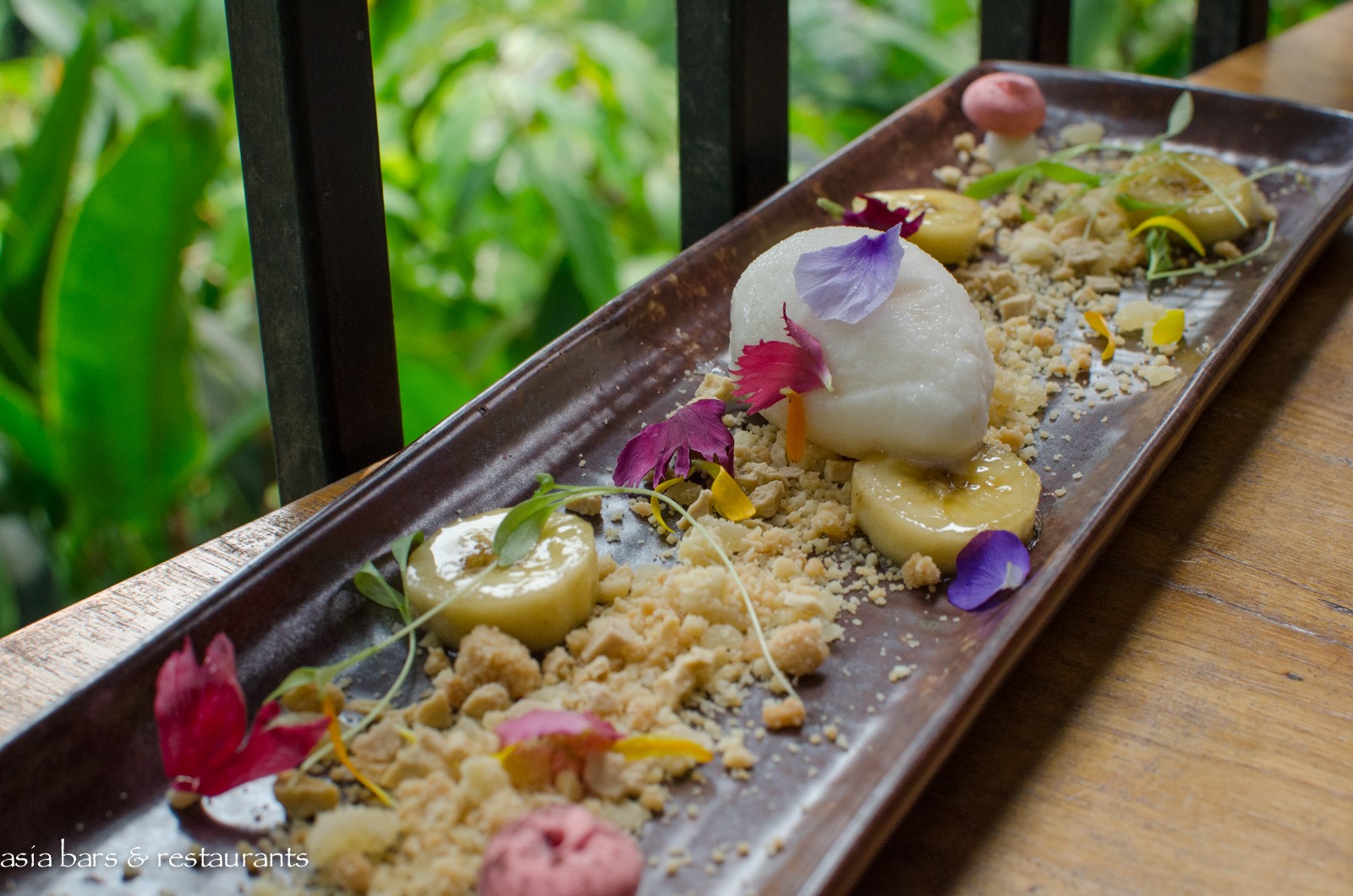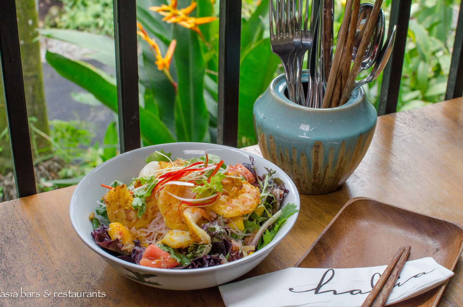 Acclaimed restaurant in tropical garden setting famous for consummate cross-cultural fusion cuisine