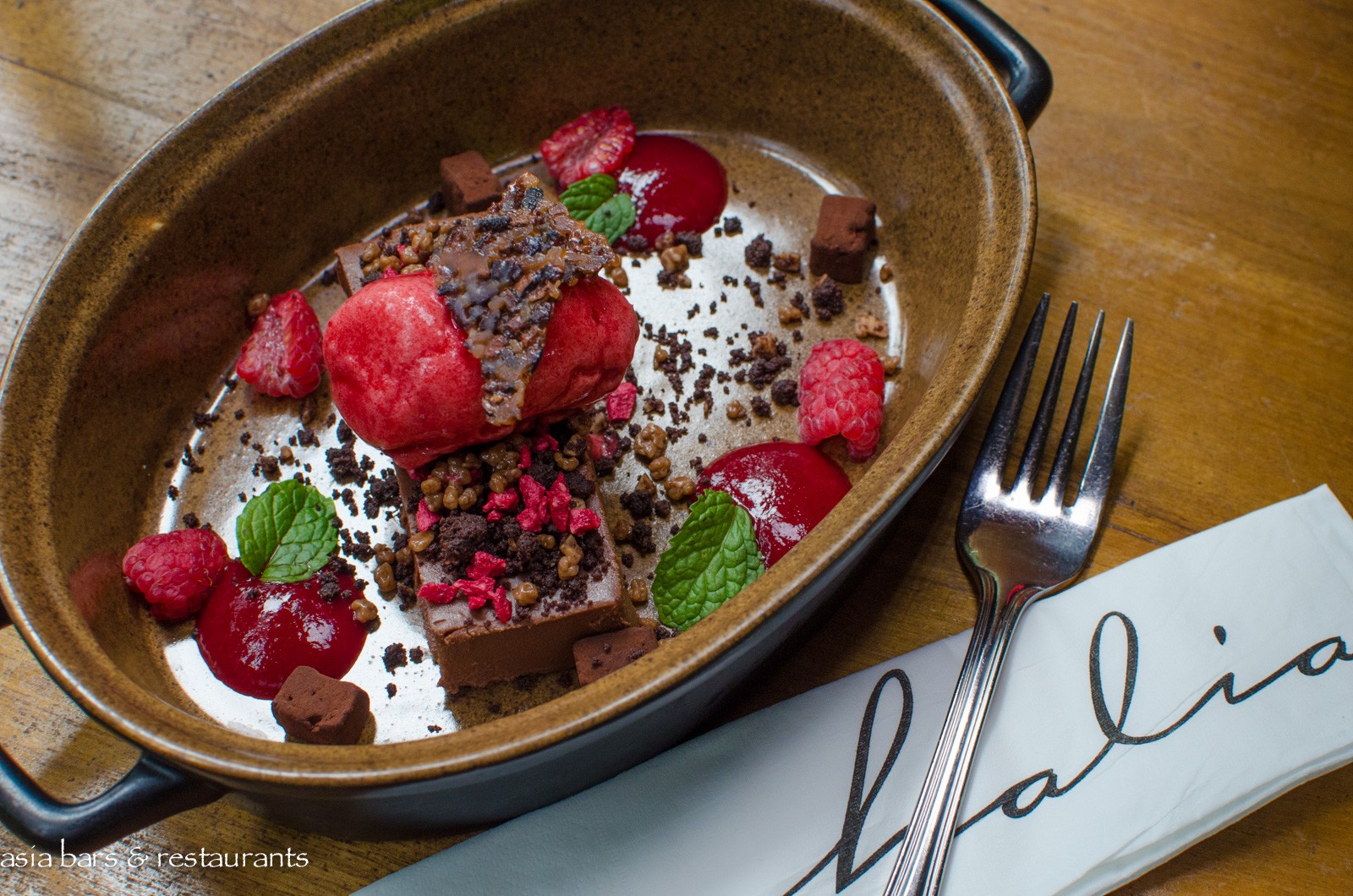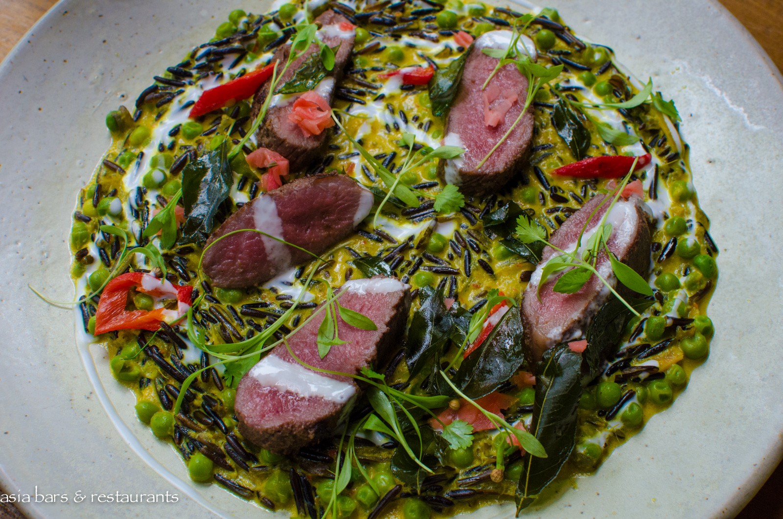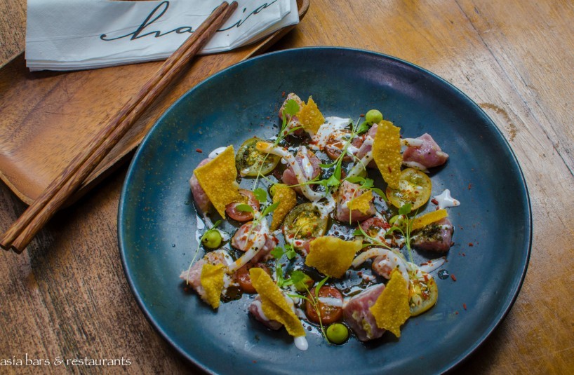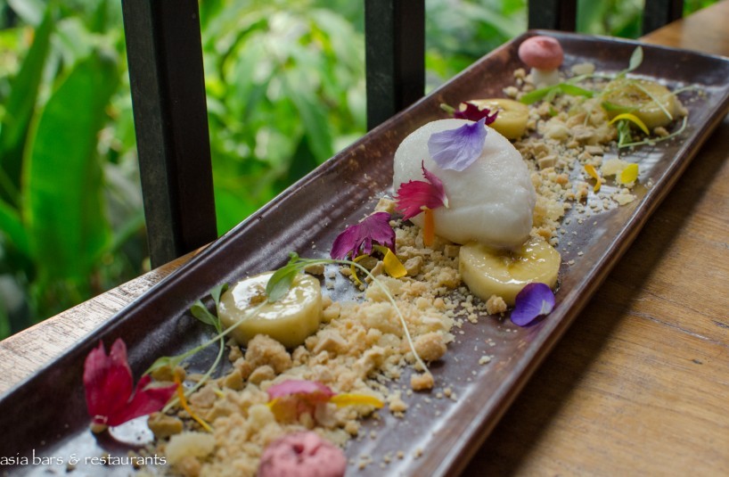 Cuisine Recently arrived executive chef Ciaran Armstrong has created a new menu that embraces modern dining sensibilities with an emphasis on sharing dishes and elegant plating. Selected signature dishes from previous menus – such as the iconic Singapore-style Chilli Crab Spaghettini – have been retained – complemented with new menu additions that highlight both reinterpretations and imaginative ingredient combinations drawn from familiar regional dishes. Dishes that exemplify this new culinary direction include the Lime & Ginger Yellowfin Tuna Kinilaw – a Philippines-inspired combination of coconut, avocado, tomato, seaweed, chilli oil & crispy wonton skin; Spice Islands Marinated Lamb Loin – with curried wild rice, charred chilli, pickled ginger and coconut; and The Ginger Garden – a delightful combination of ginger flower sherbet, freeze dried banana & banana chips, vanilla infused banana, young root ginger crumble, and edible garden.