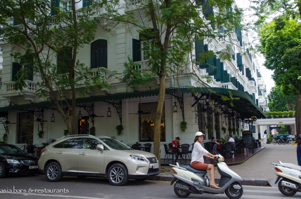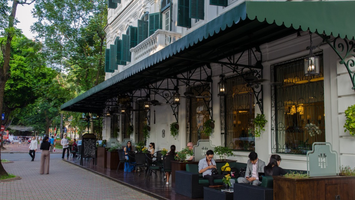 Chic Parisian-style sidewalk cafe at historic Hotel Metropole Hanoi