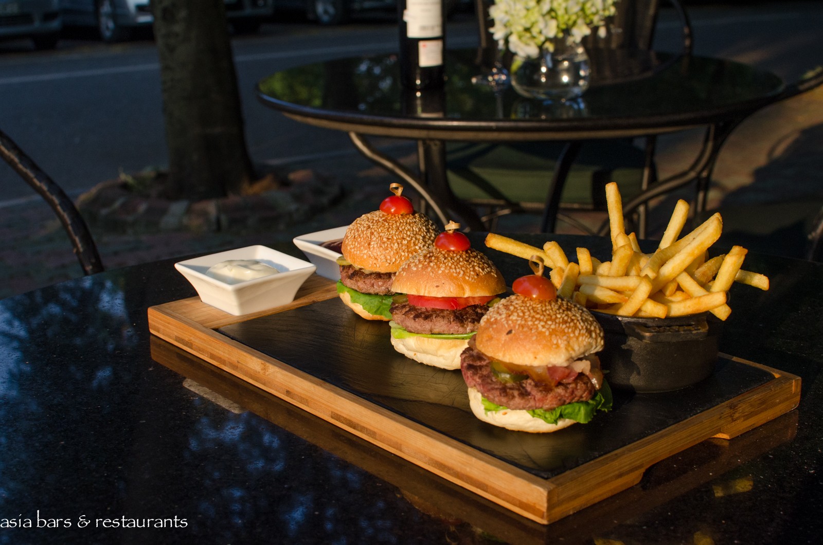 Decor Simple yet elegant cafe-style tables and chairs stand on a polished timber deck that wraps around the corner of the hotel while overhead, vintage ceiling fans are suspended from the wrought iron framed awning. Generously spaced tables seat around 50 guests in an atmosphere that exudes Parisian chic.