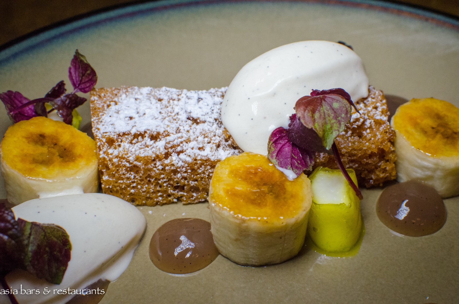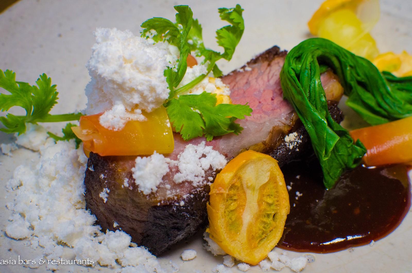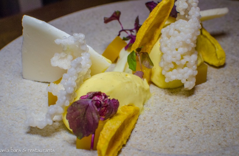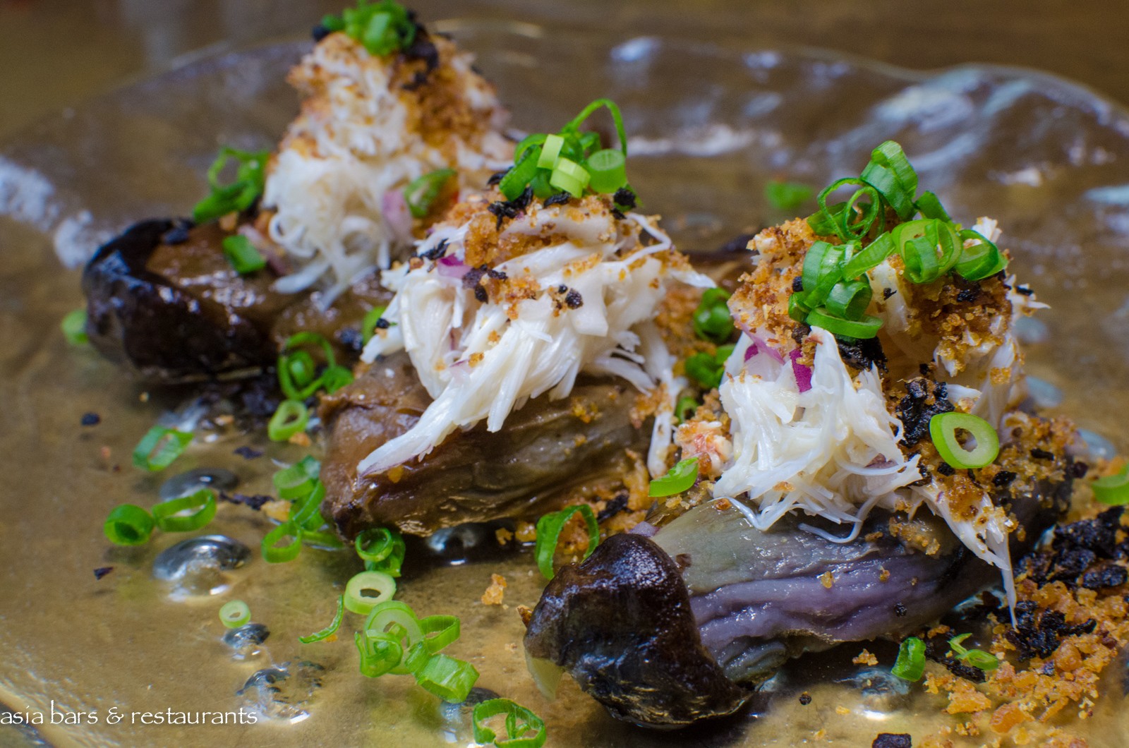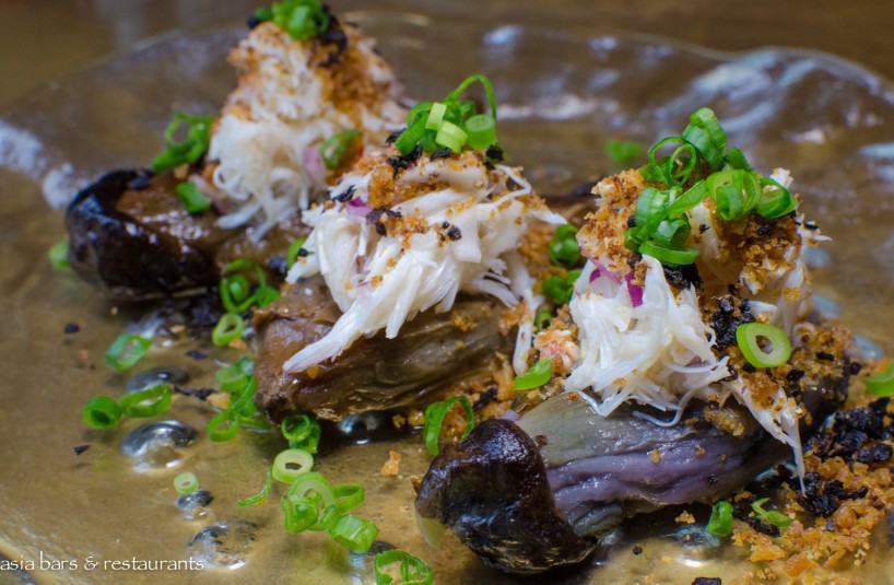 Cuisine Among the recent menu additions, dishes that exemplify the culinary personality of Ding Dong – inventive yet playful and without pretentions – include Burnt Nasu with crab and crispy shrimp – an intriguing combination of burnt Japanese eggplant skin, cooked crab paired with dried shrimp, served with fish sauce and lime juice; Wagyu beef char siew – beef short ribs marinated in house-made char siew sauce, slow-cooked for 48 hours, served with pickled papaya and freeze-dried cherry tomato; and the Ding Dong Mango dessert – mango served three ways – mango ice cream, freeze dried mango chips, and mango jelly garnished with shiso sheet.