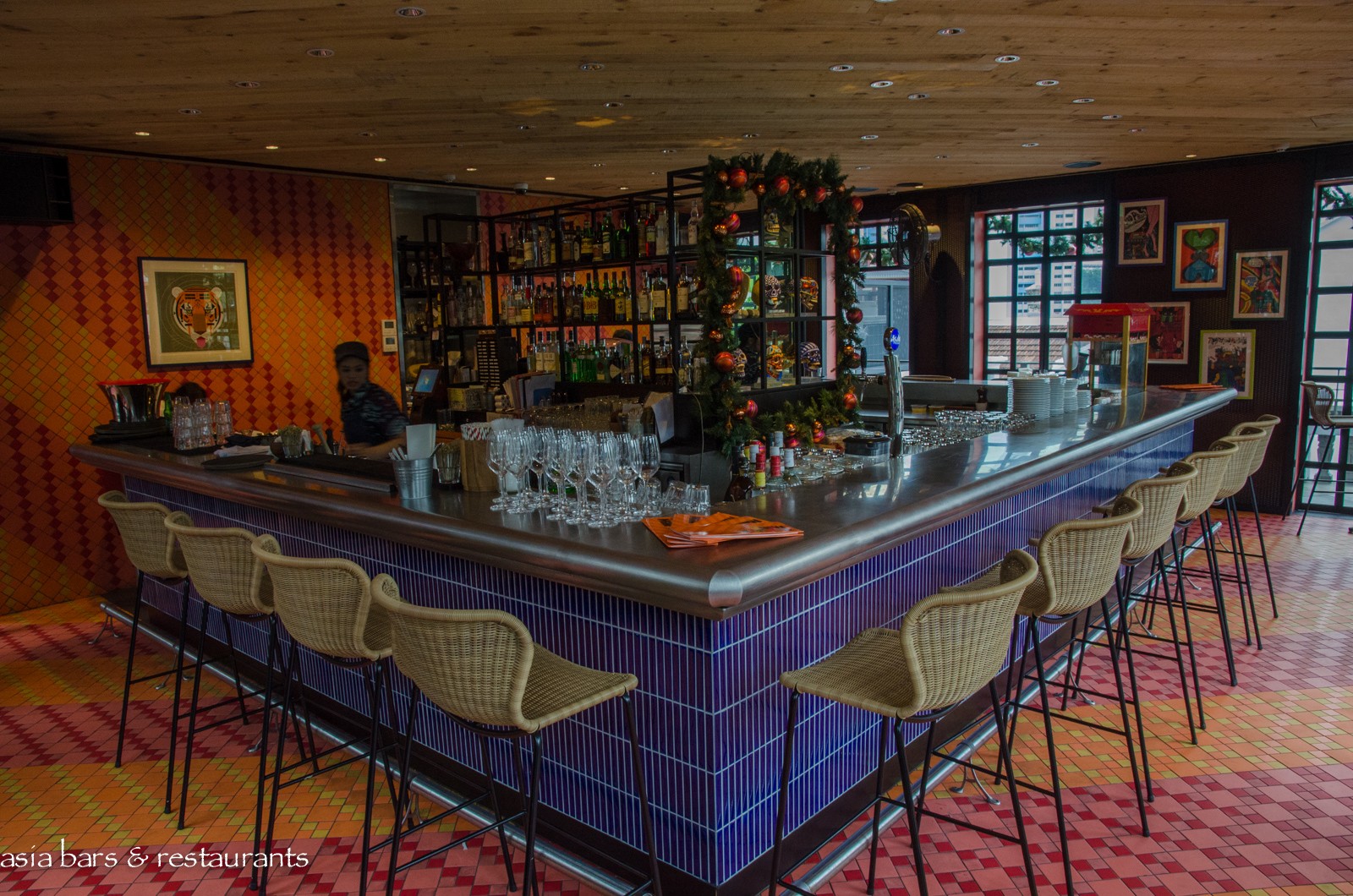 Nestled on the fourth-floor rooftop of the recently relaunched (August 2015) The Club luxury boutique hotel, Tiger’s Milk is an inviting Peruvian-inspired bar and restaurant where Latin American cocktails and contemporary Peruvian cuisine are served in a characterful and vibrant atmosphere, conveniently located on the edge of Singapore’s central business district. Taking its name from the quintessential Peruvian culinary ingredient – Leche de Tigre – the rooftop bar occupies the entire rooftop space of the restored 19th Century heritage building – and offers engaging vistas across the historic shophouses of Ann Siang Hill and beyond to the CBD. Decor references to Peruvian culture include colourful textiles and patterned tiling that contrast attractively with the colonial era vibe of the neighbourhood.