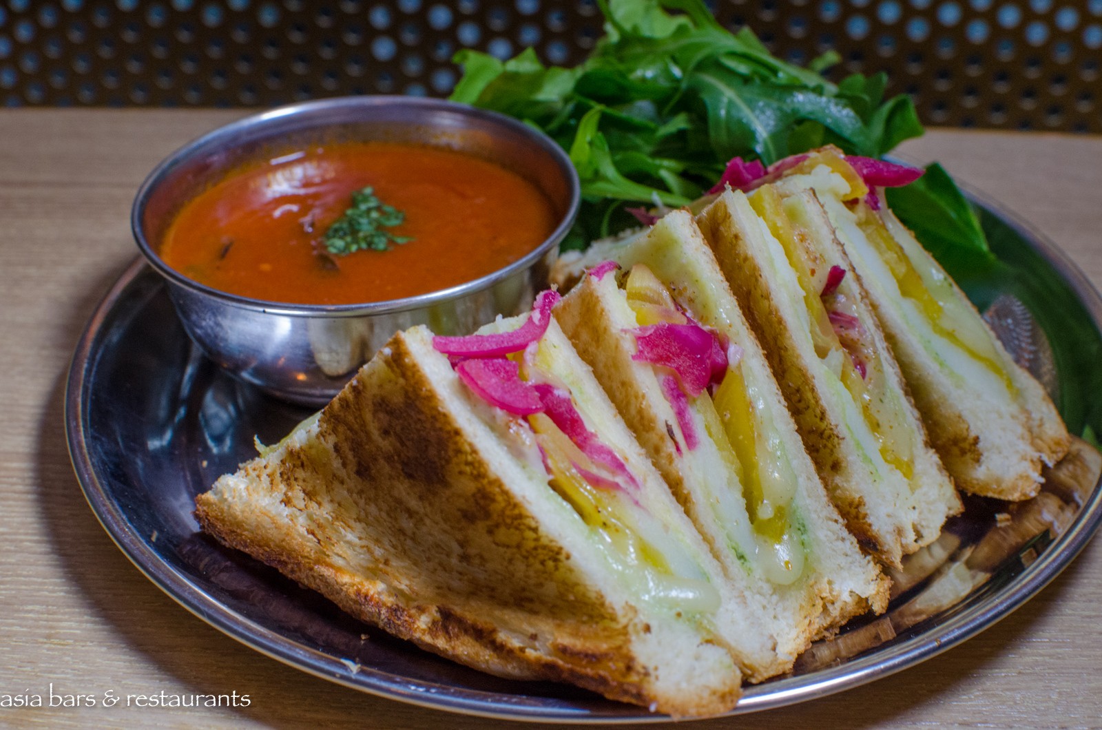 Cuisine A concise seasonal menu showcases the creative cuisine of chef-owner Preeti – dishes that characterise her approach include the Bombay Sandwich – a satisfying assemblage of beets, cilantro, potatoes and cheese – dipped in a cup of tomato soup; Vada Pav – with fried potato puff, with pickled onions and ghost pepper chutney; and the signature Holy Cow short rib curry – a braised short rib marinated with cardamom and served with root vegetables and lemon rice. Notably, the majority of the dishes at Juhu Beach Club are vegetarian-based.