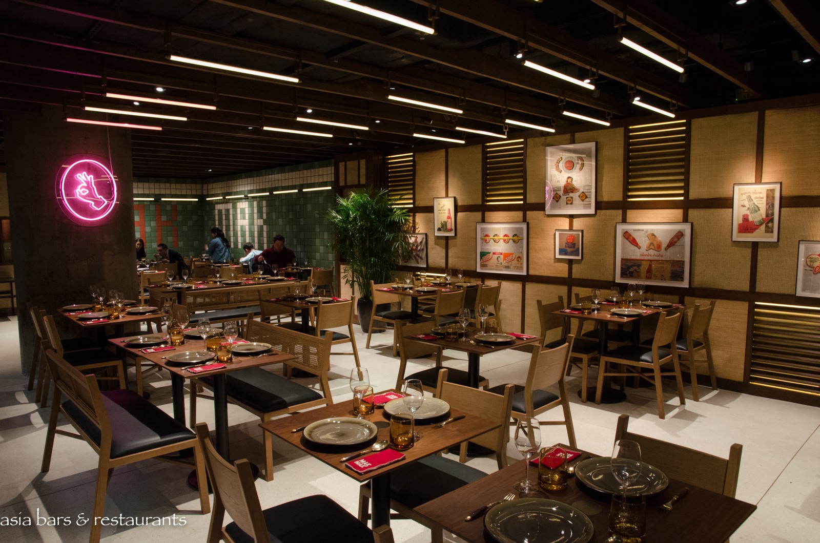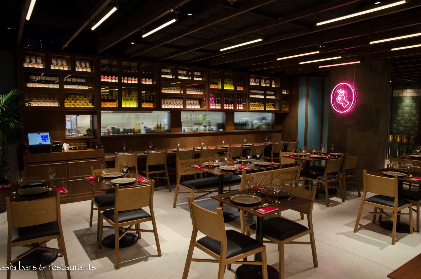 Design Located on the 2nd floor of the Atrium, Mak Mak projects a distinctive “Thainess” with its retro-inspired design that channels a midcentury Bangkok shophouse. Referencing traditional Thai grocery stores, the design created by Nelson Chow at NC Design and Architecture features a storefront and serving counter that faces out onto the pedestrian walkway, while concealed behind a sliding section of display shelving, a spacious dining area evokes the ambience of a Thai residence with soft pastel tones and timber finishes. Custom-made timber chairs and benches, together with well-spaced tables add a contemporary dining sensibility to the retro-Thai residential theme.