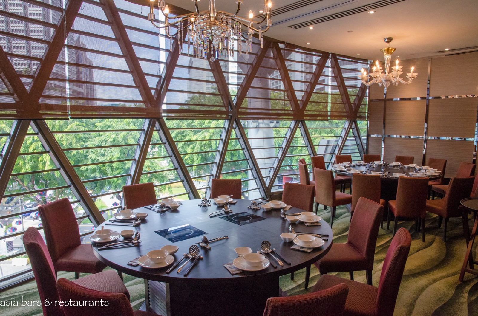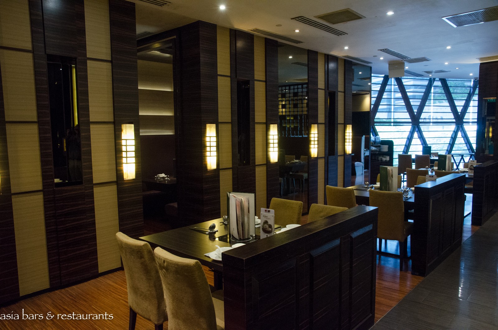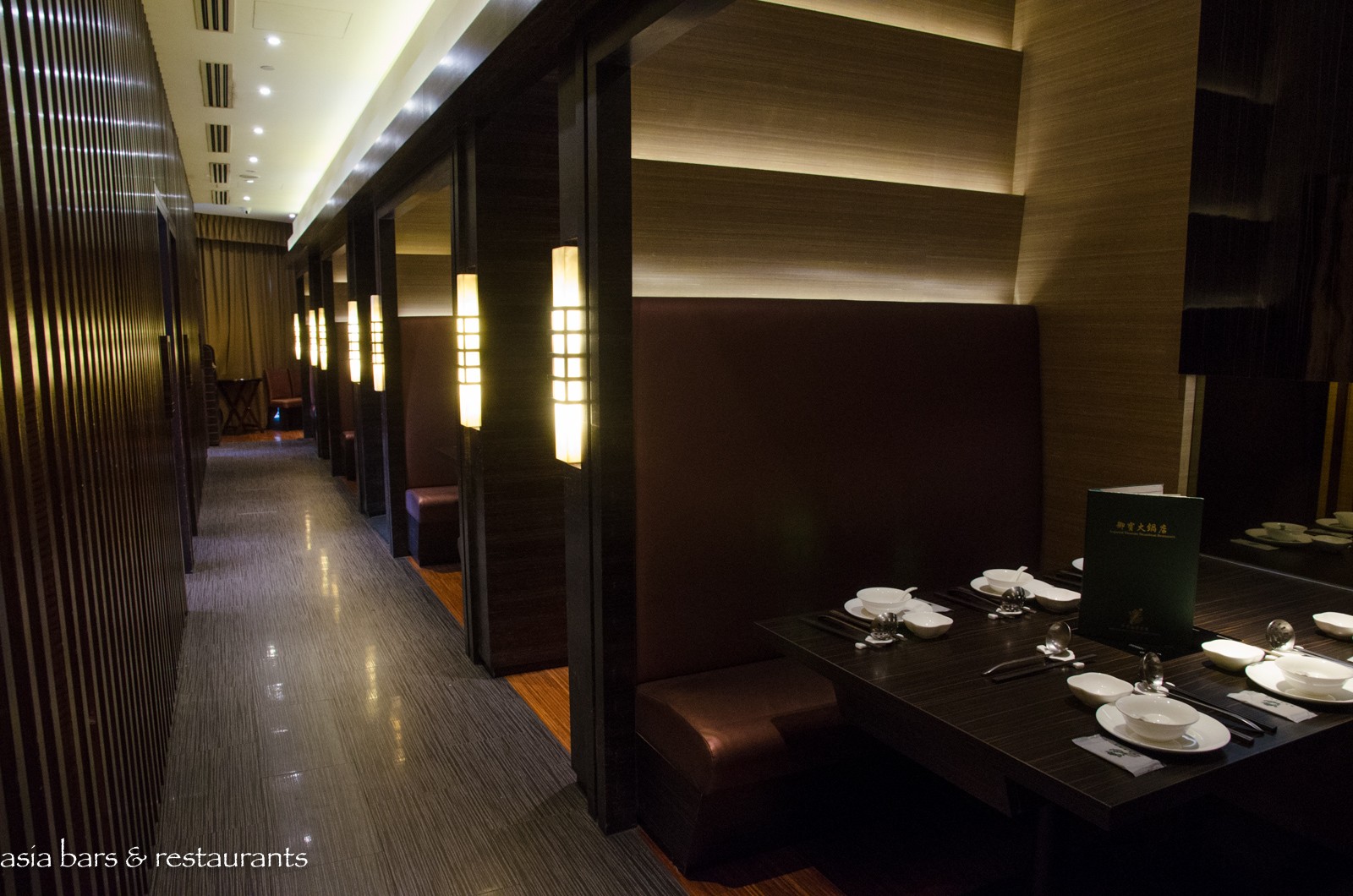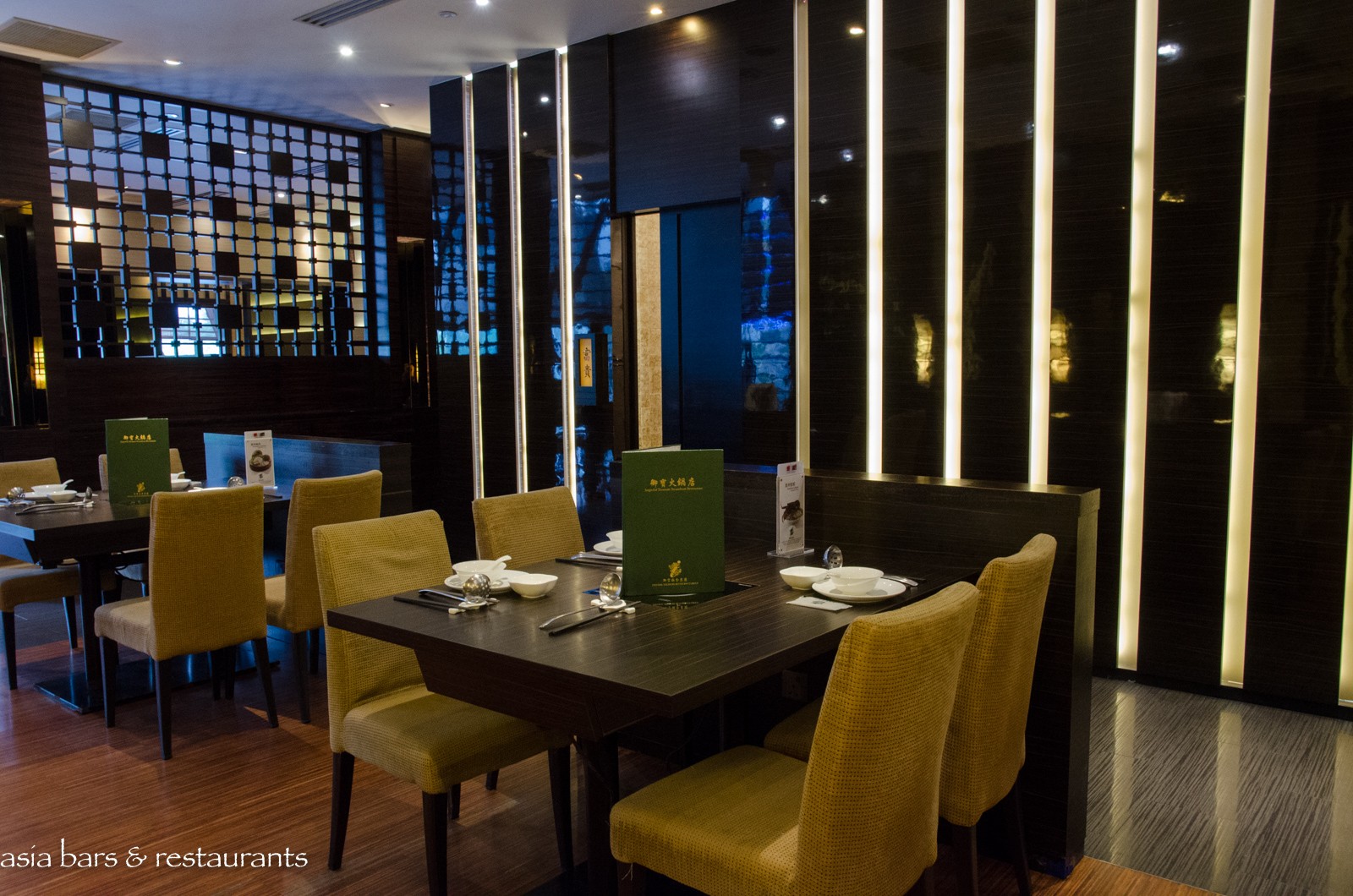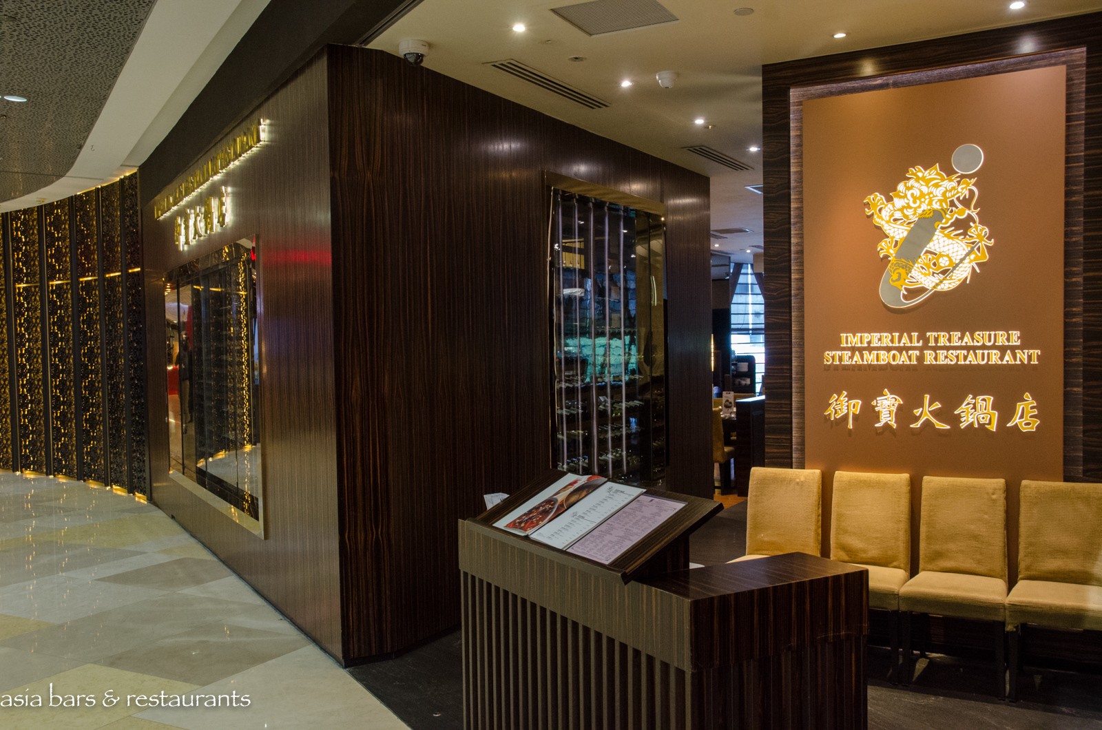 Design Located on the fourth level of the prestigious ION Orchard mall on Orchard Road, the Imperial Treasure Steamboat restaurant overlooks Orchard Road with full height windows spanning one side of the interior space. In addition to a central dining room space, a row of plush semi-private dining booths and 5 private dining rooms offer discrete spaces for small groups. Dark timbers, natural toned surfaces and contemporary furnishings impart a sophisticated design aesthetic, while private rooms are accented with luxurious features and street views. Adjacent to the entrance, a large glass-fronted wine cellar showcases an impressive assemblage of premium wines.