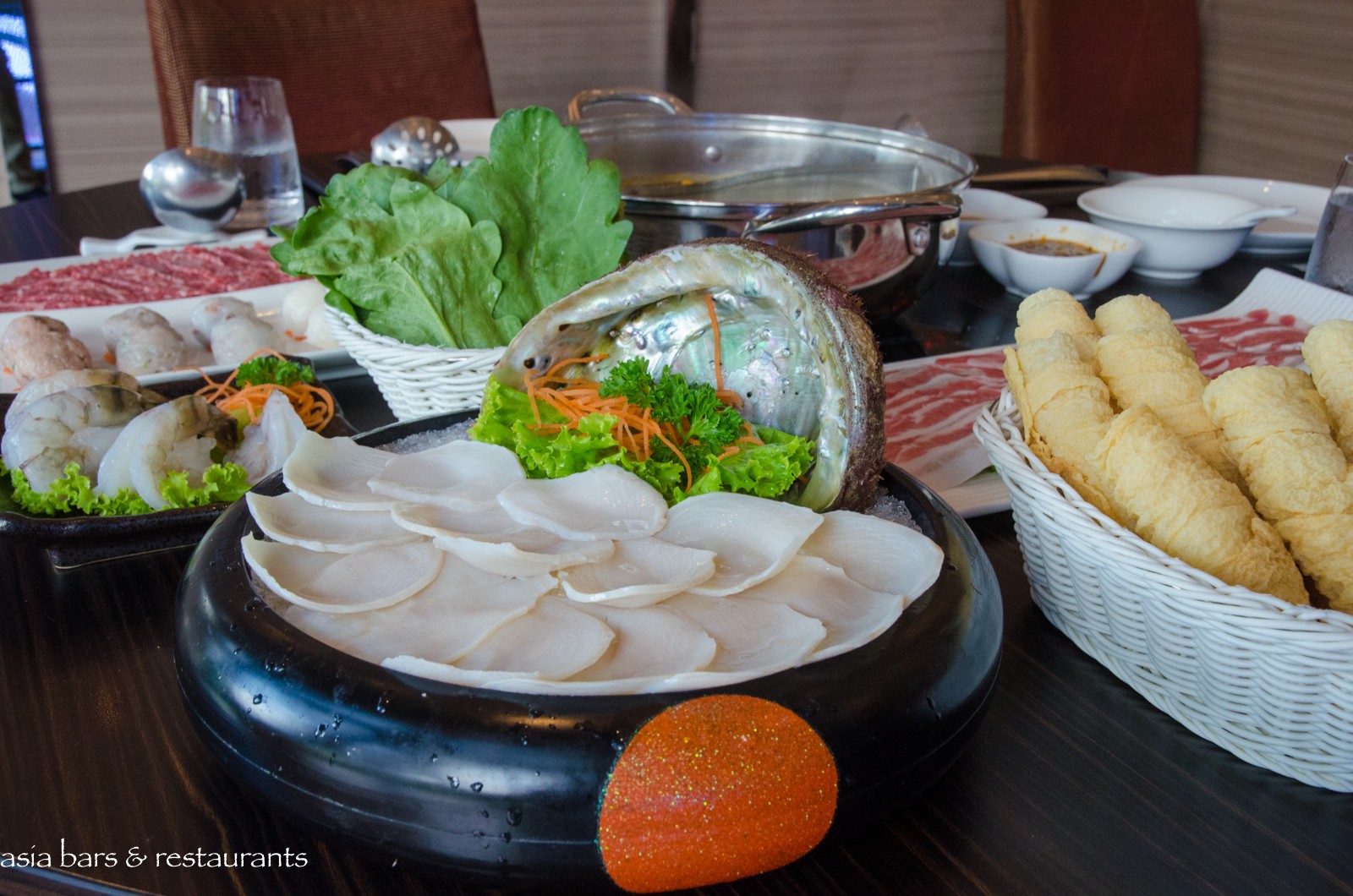 Cuisine At the essence of quality steamboat cuisine, the base soups at Imperial Treasure are prepared daily and simmered on ovens for hours to achieve the required intensity of flavour. From a wide range of soups, popular choices include the Imperial Drunken Chicken, Traditional Pork’s Bone, Seaweeds & Kelp, Satay Flavour, and Sichuan Spicy. An exceptional selection of condiments provide diners with wide range of flavour enhancements including green and red chilli, spring onions, plum sauce, peanut sauce, chopped garlic, and sambal chili to add to the fresh cuts of top quality meats including Wagyu Beef and USA Choice Short Rib and USA Sliced “Kurobuta” Pork Belly; live seafood such as Australian Abalone, Boston Lobster and Coral Trout; market fresh vegetables, and the specialty housemade meatballs. Diners can select from both a la carte and special seasonal set menus that offer good value.
