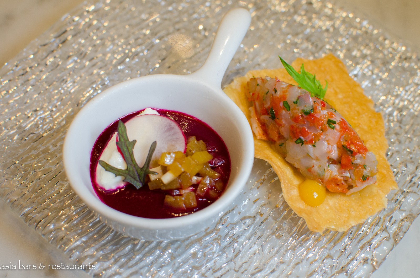 Canapes As consummate accompaniments to the cocktails, the menu of exquisite canapes offer bite-size selections of Chef Bombana’s acclaimed contemporary Italian cuisine. Featuring highest quality fresh ingredients and elegant presentation, some of the must-try canapes include the Salmon Roll with vodka cream and calvisius elite caviar; Veal Tenderloin with tuna sauce; and Warm White Asparagus with orange and asparagus emulsion and Iberico ham.
