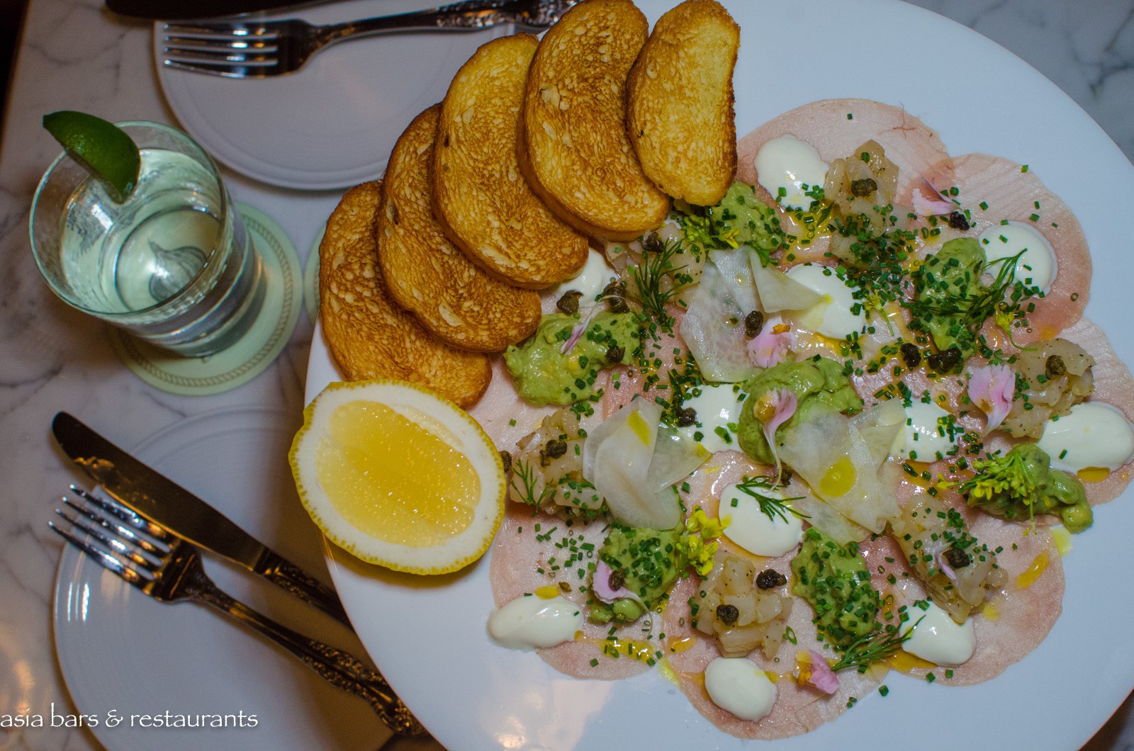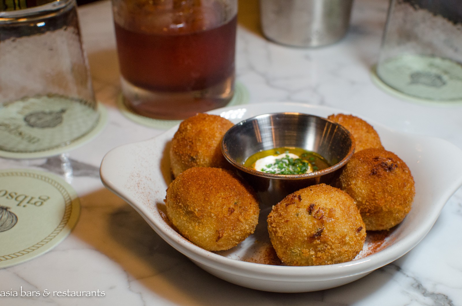Seafood menu Highlights from the raw seafood bar menu include seasonal fresh oysters, one and two-tier Seafood Towers, sharing plates of Hamachi Ceviche and Tuna Carpaccio, plus several cooked seafood dishes from the kitchen including – Oyster Sliders and Lobster Rolls. Epicurean-quality bar snacks include the Arancini Balls with orzo, octopus and truffle oil, and Sea Urchin served with cauliflower puree.