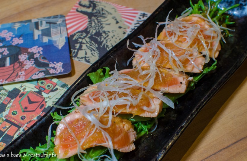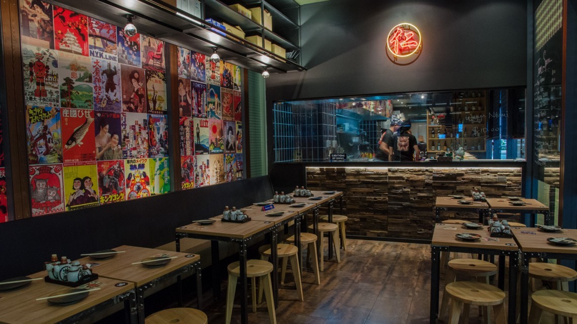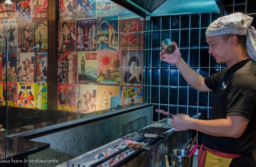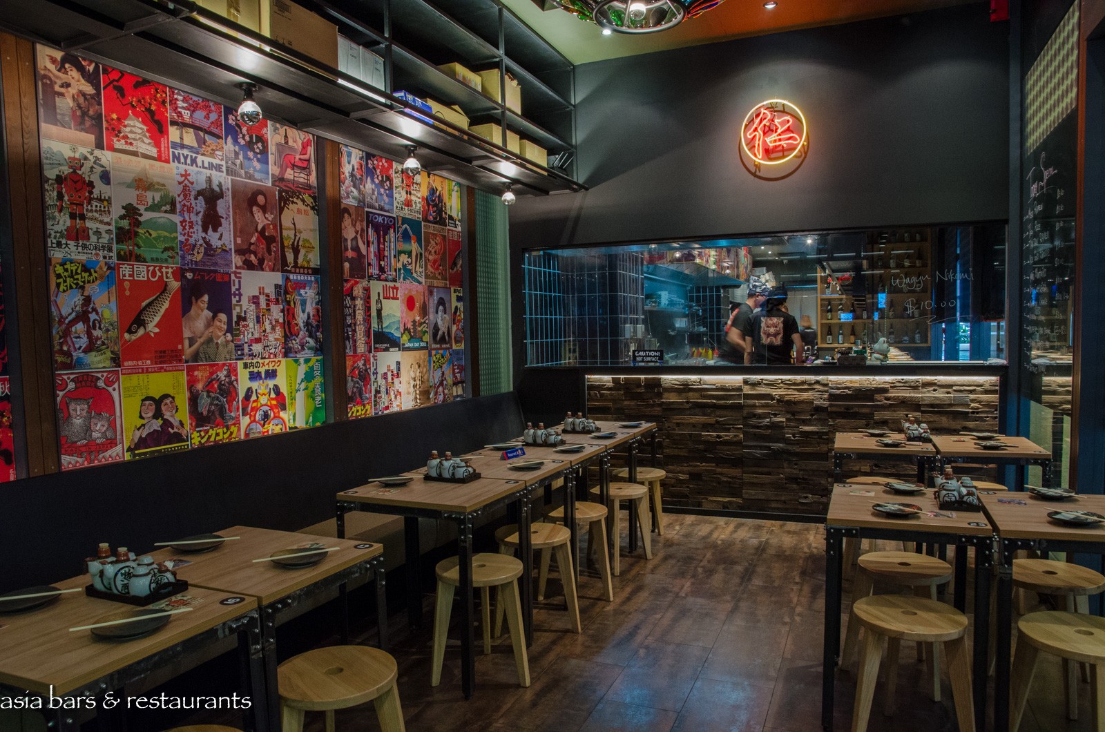 Retro-chic Japanese restaurant references traditional izakaya style eateries with yakitori dishes & sake