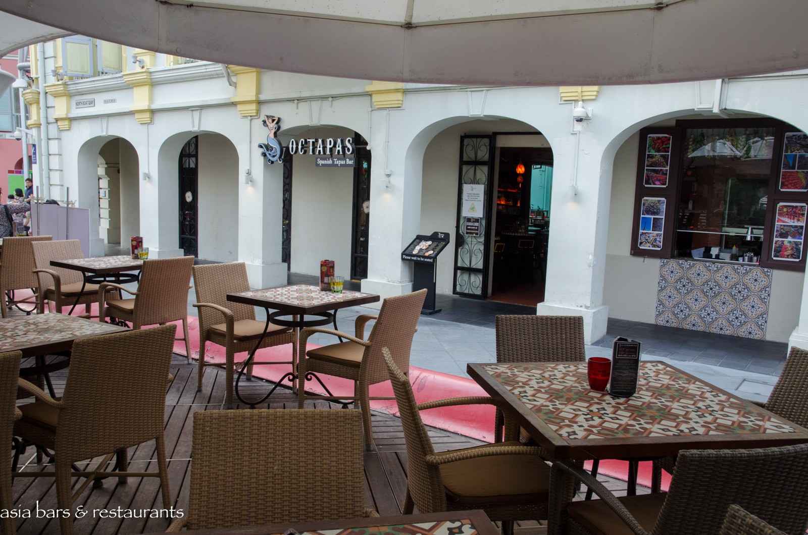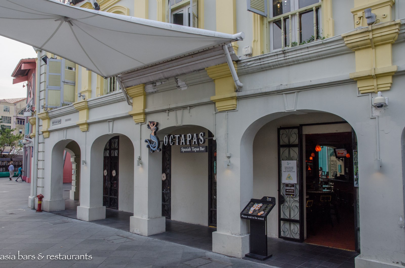 Design Set within one of the refurbished riverfront shophouses of Clarke Quay, Octapas has an attractive contemporary decor, notable for the combination of warm timbers, raw brickwork and terracotta floor tiles that reference a Catalan tapas bar heritage. The interior bar and dining spaces exude a comfortable, understated sophistication, while outdoors on the riverfront promenade, a large elevated terrace overlooks the Singapore River – with awnings overhead that protect from the tropical heat and any rain.