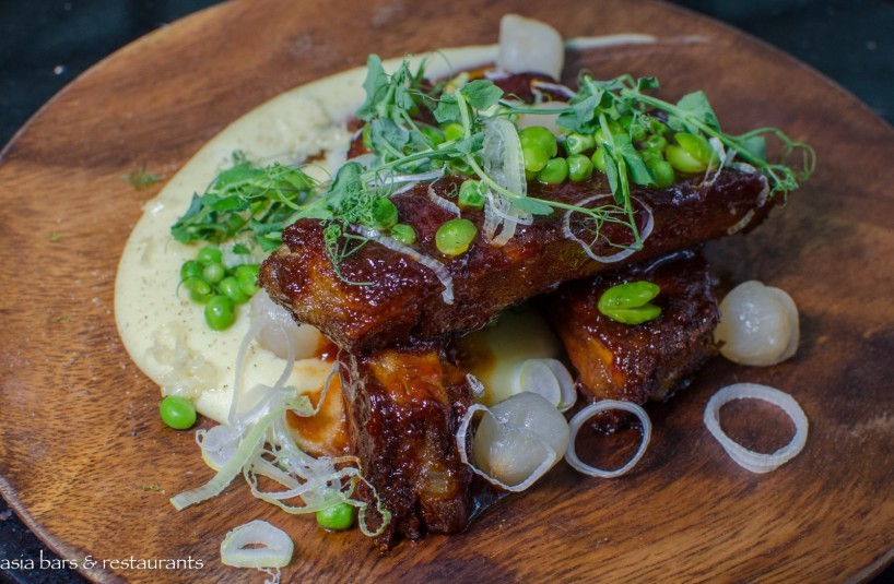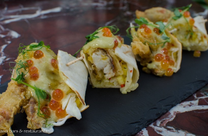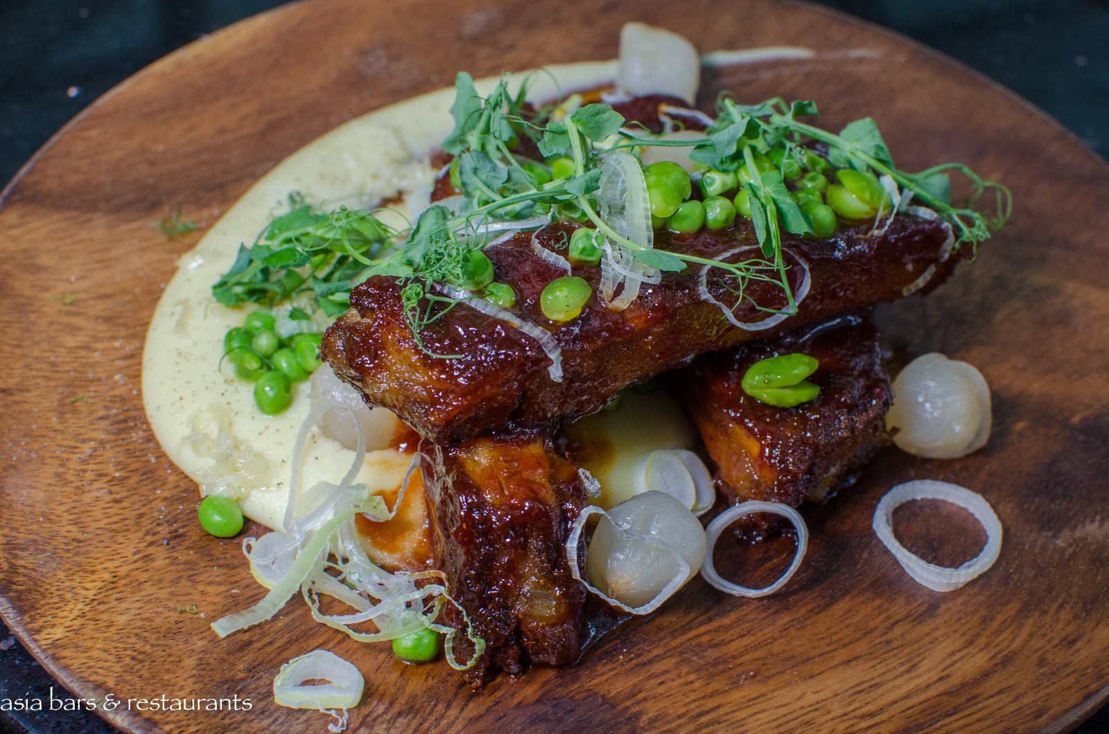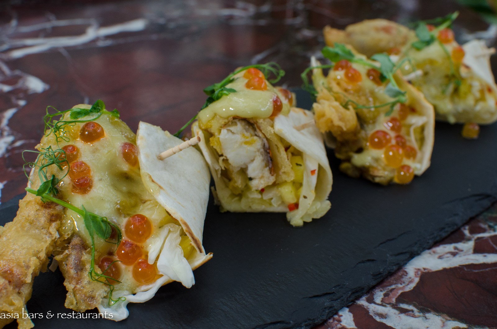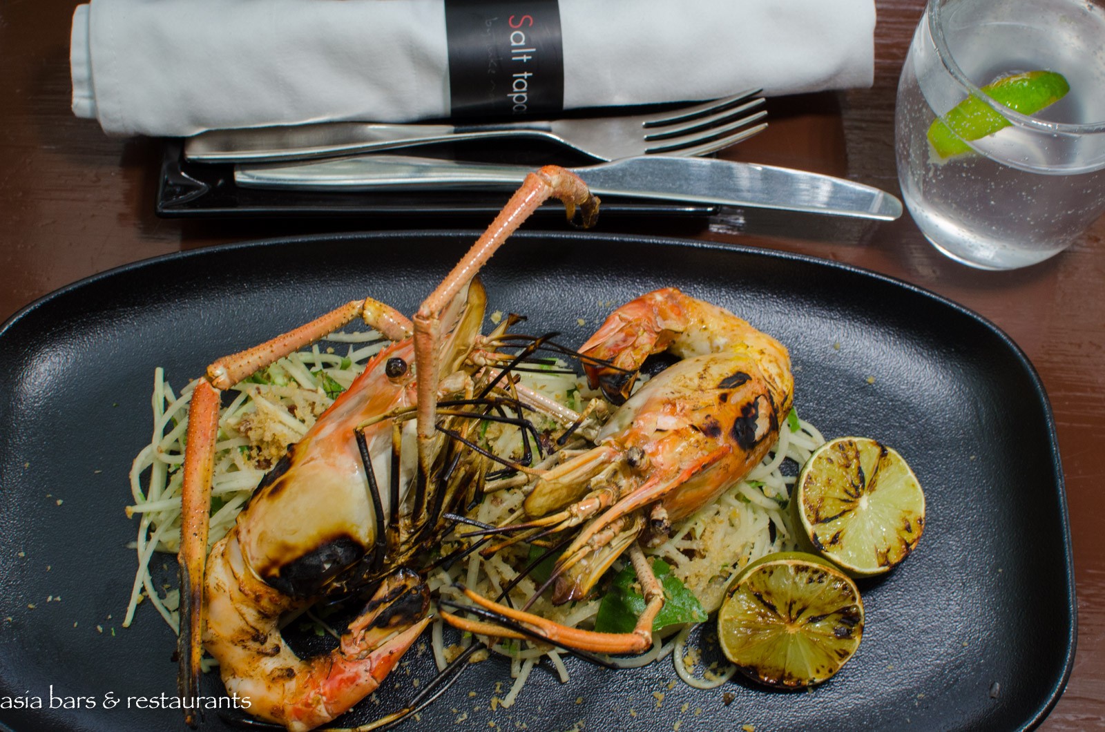 Cuisine The new al la carte menu at SALT combines a respect for traditional Catalan cooking techniques with top-quality fresh ingredients and modern plating to create attractive and flavourful dishes. Seafood features strongly, with the daily selections of fresh fish cooked with a light touch and served with local Asian vegetables. Notable dishes from the new SALT tapas menu include the Taco of Tempura Soft Shell Crab; Grilled Big Head Prawn – whole giant prawns grilled and served on a bed of papaya salad; and BBQ Pork Ribs with mash, pickled onion, sautéed pea, and edamame.