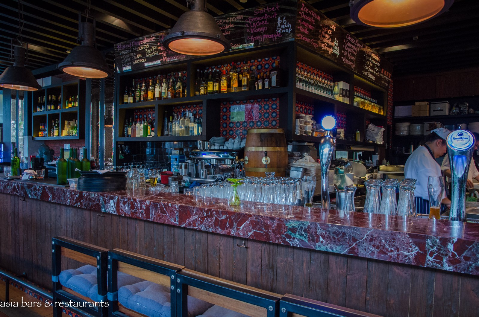 Design Entering SALT, guests can take seats at a series of red marble high-tables spanning the open-air deck, or at tables within the main interior dining room. An attractive contemporary decor combines warm timbers, patterned ceramic tiled flooring and rustic raw red bricks that evoke a traditional Spanish tapas bar aesthetic, while the centrepiece L-shaped bar and kitchen counter showcases the culinary team as dishes are prepared in view of guests.
