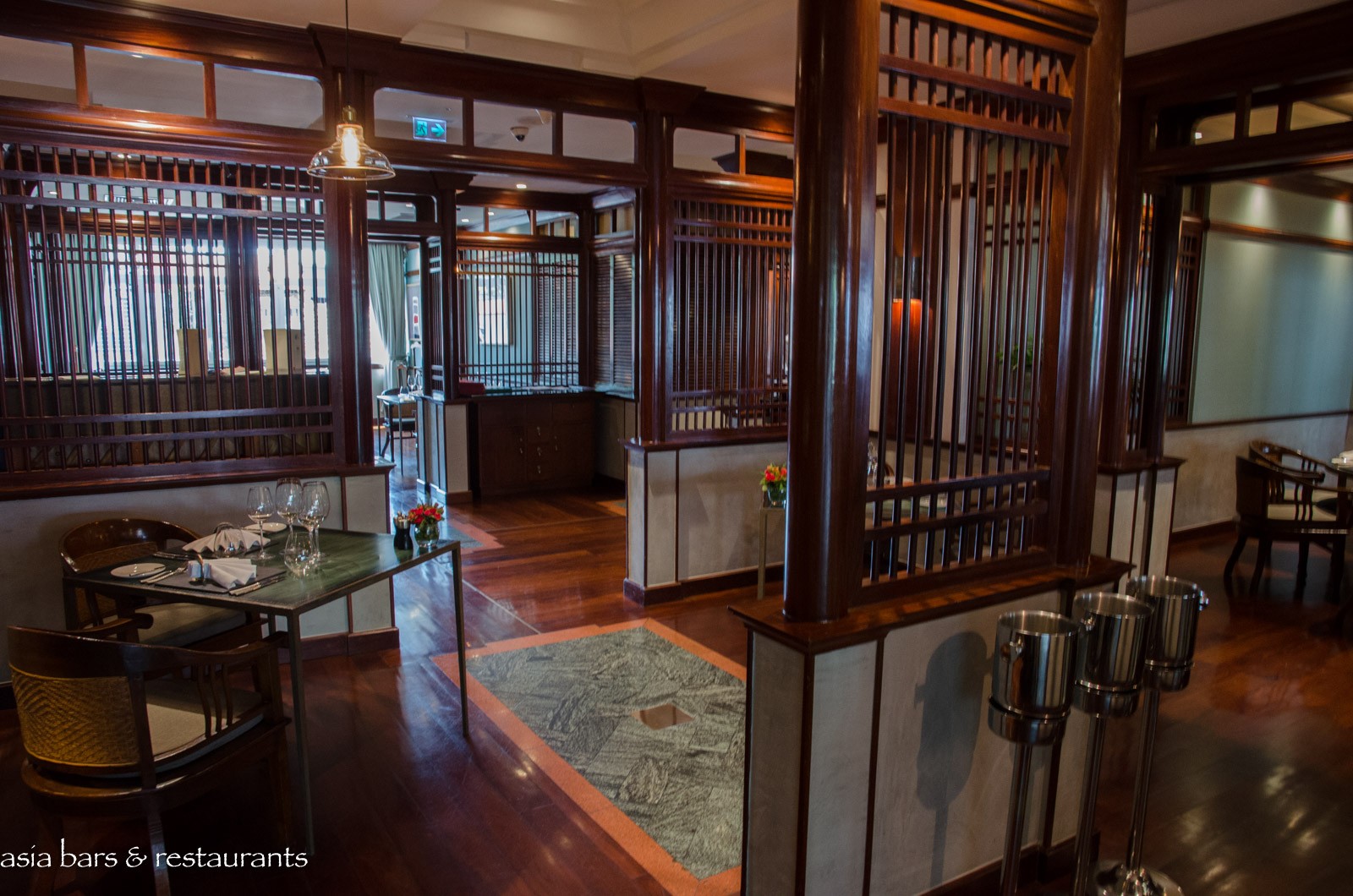 Design The restaurant design has been conceived as a haven of calm and quiet taste with its luxurious decor of polished timber flooring and wall paneling, original artworks, Hermès wallpaper, and lacquered tables. In addition to the main dining room, a series of semi-private dining spaces and rooms are arrayed across the spacious interior, separated by vertical timber screens and offering a comfortable and discrete dining environment for small groups.