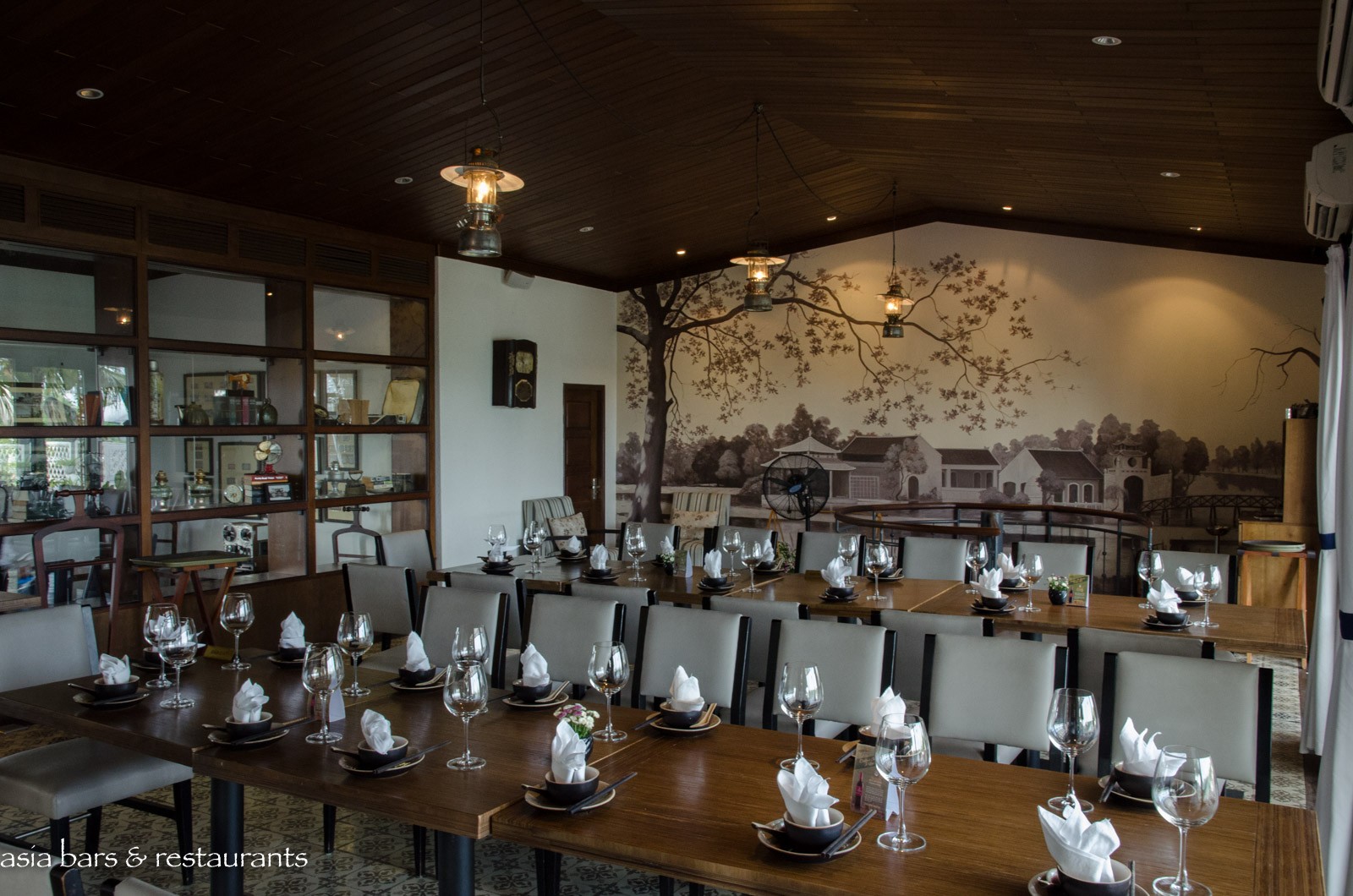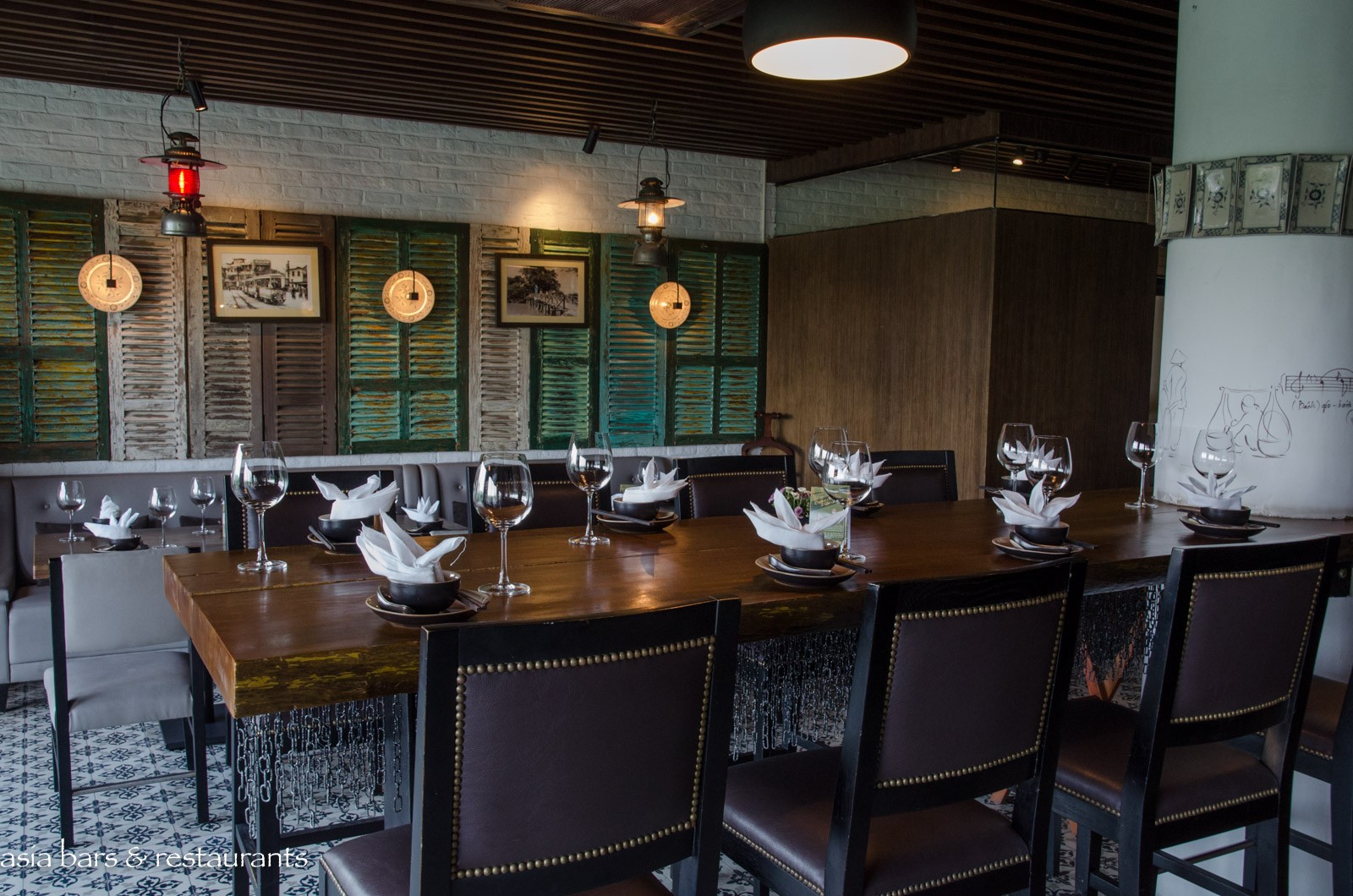 Design Inspiration from its historic location has been manifested in the characterful interiors at both levels of Cau Go Restaurant (meaning “wooden bridge” – the restaurant takes its name from the iconic lake bridge it overlooks). The contemporary interior decor of the main 5th-floor dining level is accented with reclaimed timber window shutters plus an eclectic collection of antiques referencing the French colonial era. At the upper level, the contemporary furnishings of the indoor dining and private room spaces, transition seamlessly to the casual outdoor décor of the terrace deck – where every table enjoys superb views across the lake surrounds.