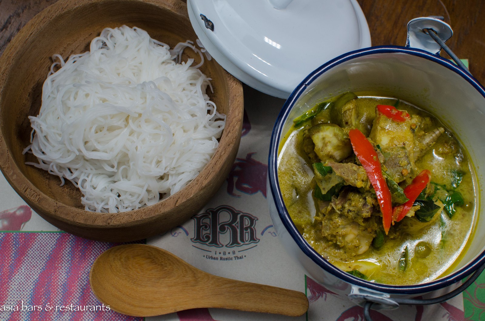 Cuisine The approachable menu of ERR’s “urban rustic Thai food” is headlined with selections of preserved meats and fish – try the “Sai Krok Issan” – Issan-style Pork Sausage cured with organic gaba rice; and pickled vegetables like “Mamuang Prieaw” – Sour Green Mango macerated in fish sauce and chilli powder. More familiar are the selections of traditional Thai charcoal grilled, wok-fried and claypot dishes, while red and green curries and spicy soups add punch to the menu.