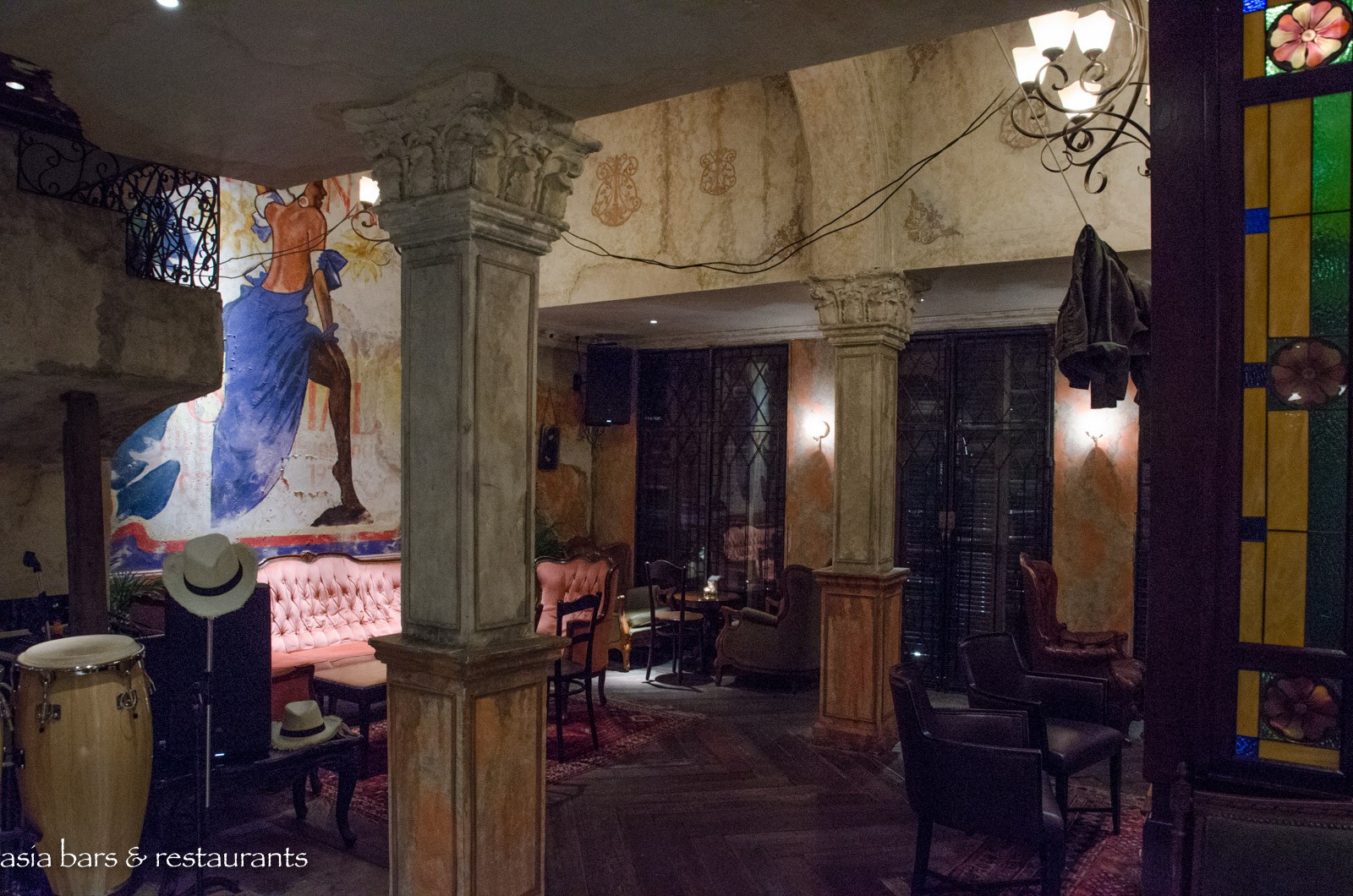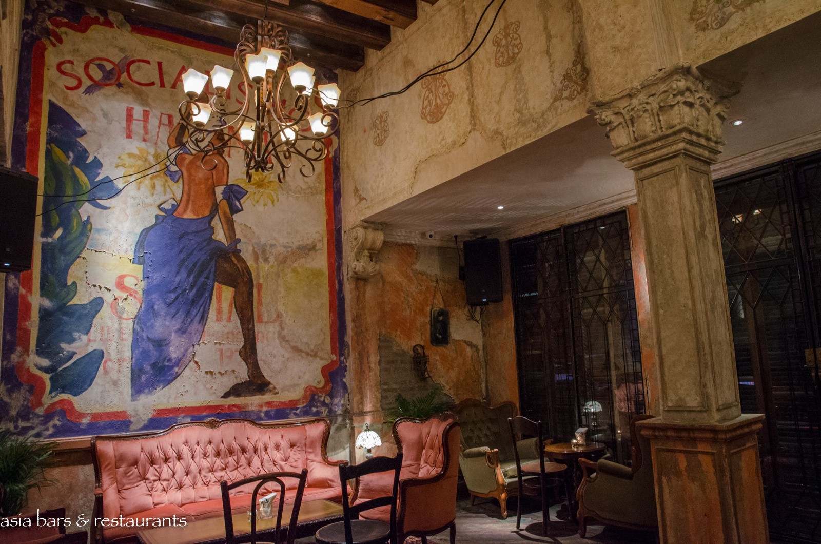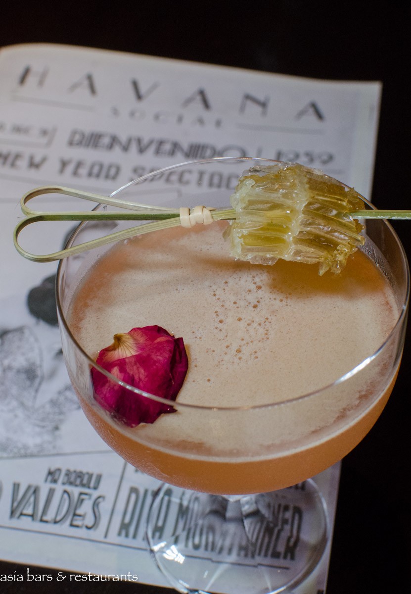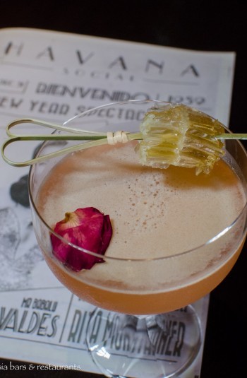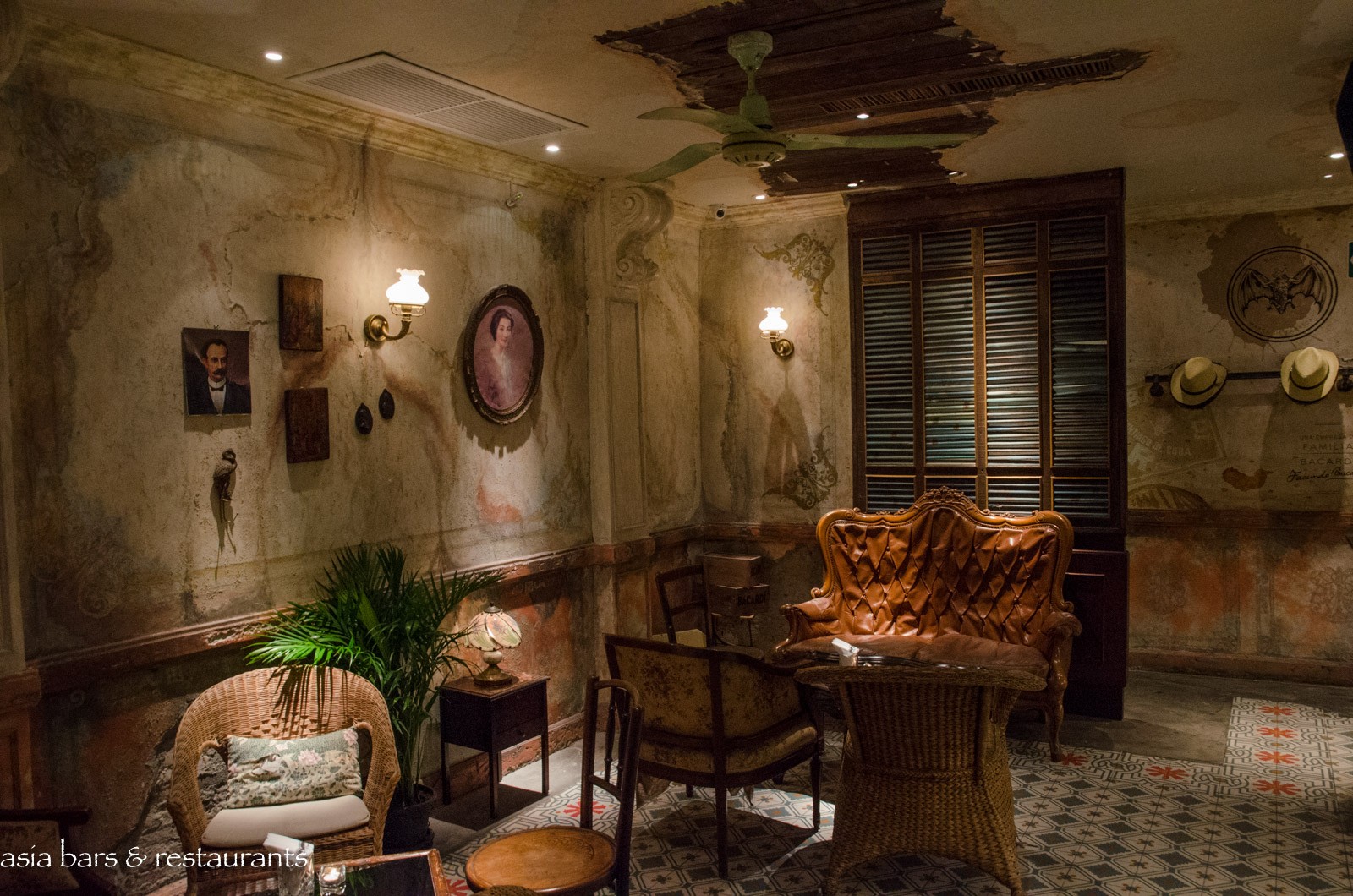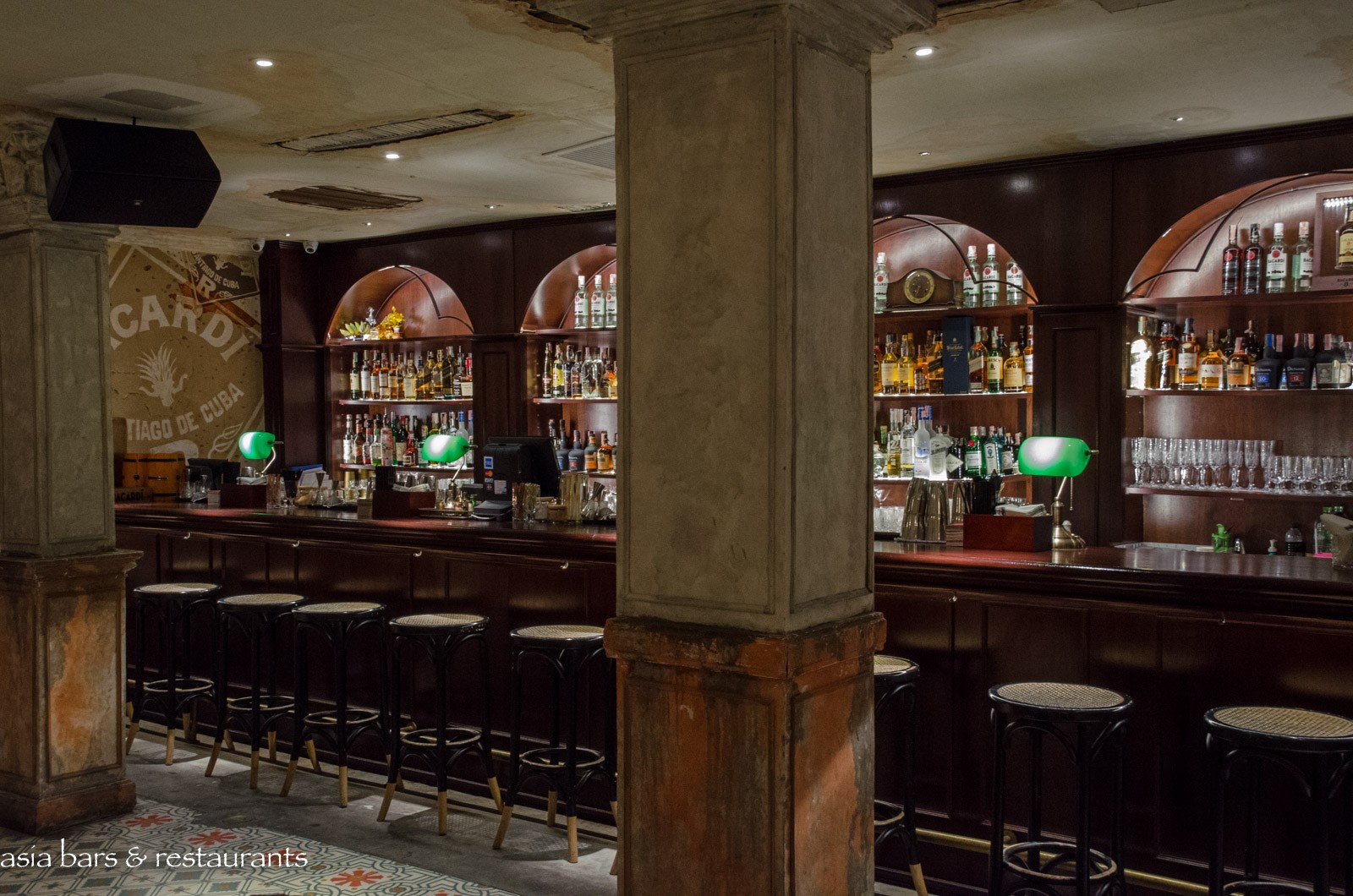 Havana Social is a Cuban-themed speakeasy bar in Bangkok that transports guests back to the decadent nightlife of pre-revolutionary 1940’s Havana. Calling ahead for a special passcode is required to gain entry – through a faux telephone booth – revealing the meticulously crafted vintage bar space where the bartenders serve up an impressive array of rum-forward classic cocktails, and live DJs and musicians recreate the glamour and party vibe of the legendary Caribbean playground. Secreted away down a small laneway along Bangkok’s buzzing Sukhumvit Soi 11 nightlife zone, a decrepit Cubanos sandwich cart, and a colourful mural-covered facade offer clues to the whereabouts of the drinking den inside. Dimly lit, yet comfortably spacious, the main bar area has an adjoining lounge space, while a staircase leads to an exclusive upper-level cigar bar and lounge. Havana Social – launched in late 2015 – is the latest project from the prominent Bangkok F&B group Soho Hospitality – their highly-rated Above Eleven rooftop bar and Peruvian restaurant; and Charcoal Tandoor Grill & Mixology upscale Indian restaurant and cocktail bar, are located nearby.